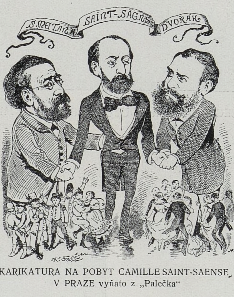 V lednu 1882 vystoupil v Praze na Žofíně jako klavírista a dirigent, setkal se také zřejmě se Smetanou a Dvořákem. O čtyři roky později přijel znovu a vystoupil jako dirigent a interpret svých skladeb na koncertě v Národním divadle. Komponoval v té době svůj populární Karneval zvířat.