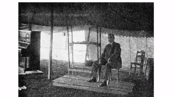 „Začalo se vysílat 18. května 1923 z Kbel. Prvním vysílacím studiem v Československu byl stan zapůjčený od skautů. Uvnitř byl klavír a několik židlí, aparaturu tvořil uhlíkový mikrofon – dolní část telefonního sluchátka.“