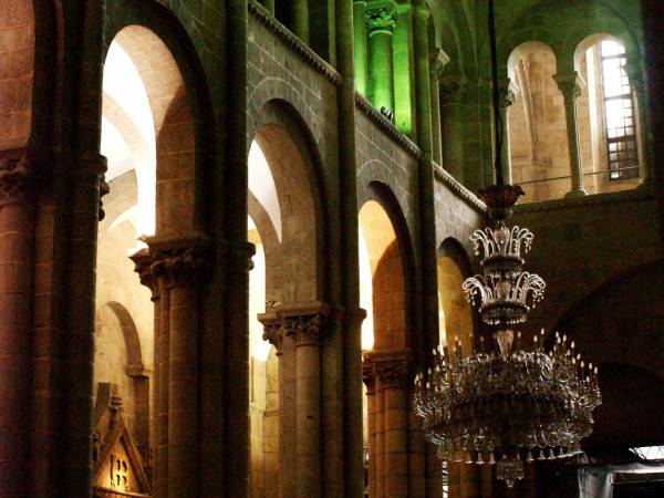 Obrovitý románský kostel s barokním průčelím žije svým vlastním životem, včetně působivé varhanní a vokální hudby. Vnitřní prostor katedrály je členitý, temný, bohatě zdobený. Její lodí zní často zpěv. Ze dvou varhanních prospektů umístěných vysoko v hlavní lodi naproti sobě trčí dlouhé horizontální píšťaly, takzvané španělské trumpety.