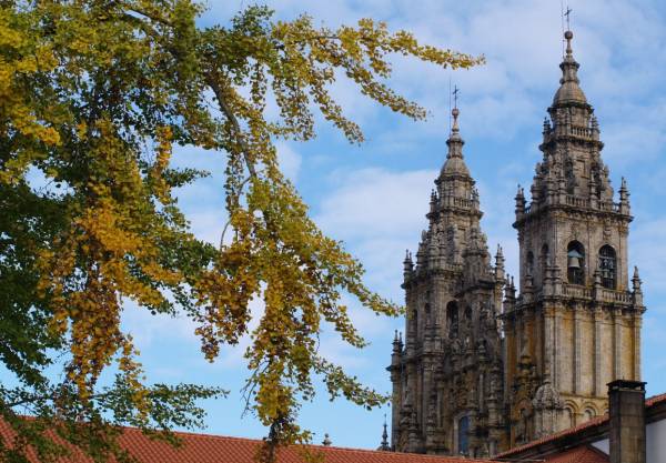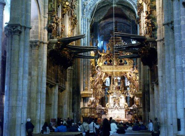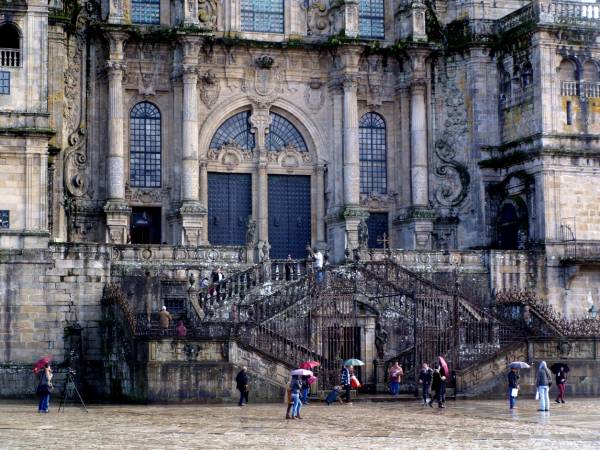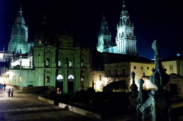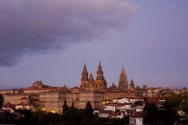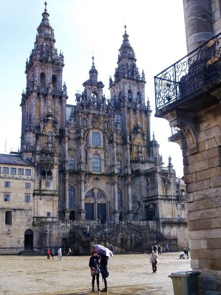 Santiago de Compostela, z Česka vzdálené po evropských dálnicích téměř tři tisíce kilometrů, je po Římě a Jeruzalémě třetím z nejznámějších poutních míst západního světa. Město má počátky již ve čtvrtém nebo pátém století. První kostel nechal na jeho vyvýšeném místě v devátém století, v době Karla Velikého, vybudovat galicijský král Alfonso II. Další stavbu zničili Mauři. Třetí kostel se začal stavět v roce 1075 nebo 1078. A to je současná bazilika svatého Jakuba, dnes se dvěma více než sedmdesátimetrovými věžemi a se vstupní bohatě zdobenou kamennou Bránou slávy. Pochází z přelomu jedenáctého a dvanáctého století. Podle Liber Sancti Iacobi byla dokončena v roce 1122, podle Codexu Calixtinus byl stavitelem Bernard starší. Chrám byl vysvěcen v roce 1211 za přítomnosti krále Alfonse IX. K tomuto jádru katedrály se pak připojovaly ještě další kaple, věže, kupole a ambity. Přístavby jsou z šestnáctého až osmnáctého století.