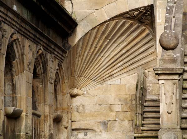 Symbolem a doslova logem poutníků a Svatojakubské poutě – i jedním z výtvarných atributů tohoto katolického světce – je mušle hřebenatky. Na plážích v Galicii se hojné vyskytují, jsou spojeny s legendami. Je v nich ovšem skryt i symbol: drážky skořápky se spojují v jediném ohnisku, stejně jako se různé cesty spojují v Santiagu de Compostela.