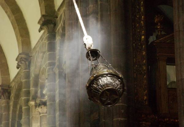 Otevřeno je pro turisty i věřící pozdě do večera a liturgie tu probíhá téměř nepřetržitě. Nejpůsobivěji v neděli v poledne, kdy se dává do neuvěřitelného houpavého pohybu celou příčnou chrámovou lodí, dosahujíc v úvratích až ke stropu, obrovitá, u stropu zavěšená kadidelnice. Vykuřovadlo nazývané botafumeiro, což v galicijštině znamená „vypouští kouř“, rozhoupává několik řeholníků. Houpání doprovází svištivý zvuk a svérázná hudba. Je to téměř starověký rituál ukazující snad až kamsi do původní nerozdělené církve, na Východ, do Orientu. Ale magické prostředí je naplněno hudbou i v jiných částech dne.