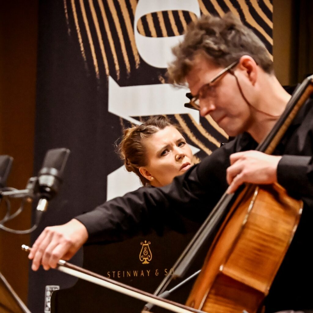 Program koncertu i informace zveřejněné dlouho před koncertem na webu festivalu prozrazovaly zajímavé skutečnosti ke vzniku děl dvou velikánů minulého století i čerstvých novinek. Dovolím si shrnout čtenářům portálu KlasikaPlus.cz pár zajímavostí. Skladby Brittena a Šostakoviče mají společného více než jen nástrojové obsazení. Jejich autory jsou skladatelé, kteří se nepřidali k avantgardnímu proudu v duchu dodekafonie a serialismu, ale jejich tvorba má blíže neoklasicismu Stravinského. Ač oba pocházeli z velmi odlišných koutů Evropy a z jiných kulturních i politických poměrů, potkali se během jednoho koncertu v Londýně, kde se oběma hrála jejich hudba. Navzdory jazykové bariéře se mezi nimi vytvořilo hluboké přátelství. Pro jejich sonáty pro klavír a violoncello je také společné, že byly obě napsány na popud výjimečného violoncellisty Mstislava Leopoldoviče Rostropoviče. Oproti svým starším kolegům Štěpán Filípek serialitu ve své skladbě využil, spolu s folklorními motivy a krátkými citacemi ze sonát tohoto večera. Sára Medková se nechala inspirovat Šostakovičovou sonátou, její skladba je také in D. Tolik k teoretickému úvodu.