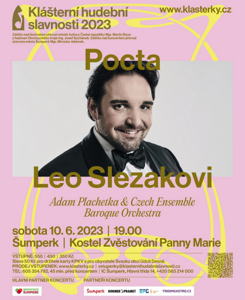 Slavnostního zahájení 10. června se v Šumperku ujme basbarytonista Adam Plachetka. Koncertem s Czech Ensemble Baroque Orchestra vzdá hold šumperskému rodákovi a ve své době slavnému tenoristovi Leo Slezakovi. Jeho osobnost v dramaturgii festivalu připomíná rovněž výstava, přednáška ve Vlastivědném muzeu Šumperk a několik dalších pěveckých koncertů – Andělské hlasy v Bílé Vodě, Rozjímání Czech Ensemble Baroque Quintet v Klášteru na Hedeči či Il Castrato Vojtěcha Pelky v Maršíkově. Koncert Pocta Hortensii von Zierotin v Bludově, kde vystoupí sopranistka Olga Jelínková, připomene další pěveckou osobnost spjatou s regionem.