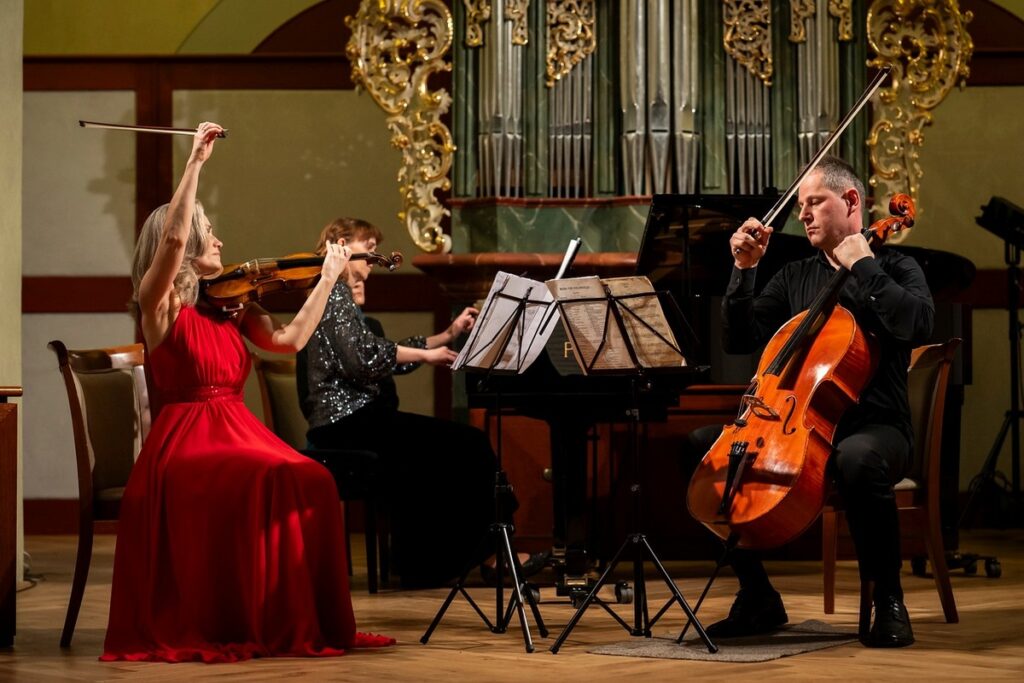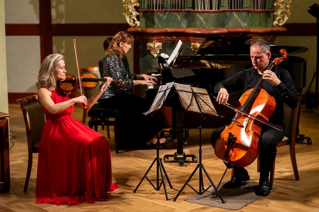V barokním refektáři Profesního domu MFF UK zaznělo nejprve romantické, čtyřvěté mendelssohnovské Klavírní trio č. 1 d moll, op. 32, dílo Antona Arenského (I. Allegro moderato, II. Scherzo. Allegro molto, III. Elegia. Adagio, IV. Finale. Allegro non troppo), závěr večera patřil Klavírnímu triu č. 2 e moll, op. 67 Dmitrije Šostakoviče (I. Andante moderato, II. Allegro con brio, III. Largo, IV. Allegretto. Adagio), skladbě reflektující těžkou dobu druhé světové války. Oba jsou to opusy neobyčejně rozsáhlé, svým obsahem hluboce závažné. Byly interpretovány ve výraze dramaticky, s citovou hloubkou, naléhavostí a razancí, současně však i na vysoké technické úrovni. Obdivuhodná byla zejména intonační čistota obou smyčcových nástrojů, dokonalá souhra všech tří a jejich dynamická vyváženost. Smyčcové nástroje za měkkost projevu vděčí barevně hutnému tónu a diferencovanému vibratu, klavír se pak vyznačoval angažovaným partnerstvím. Pianistka vždy velmi dobře a pohotově odhadla, kdy má v síle ustoupit a kdy naopak přidat.