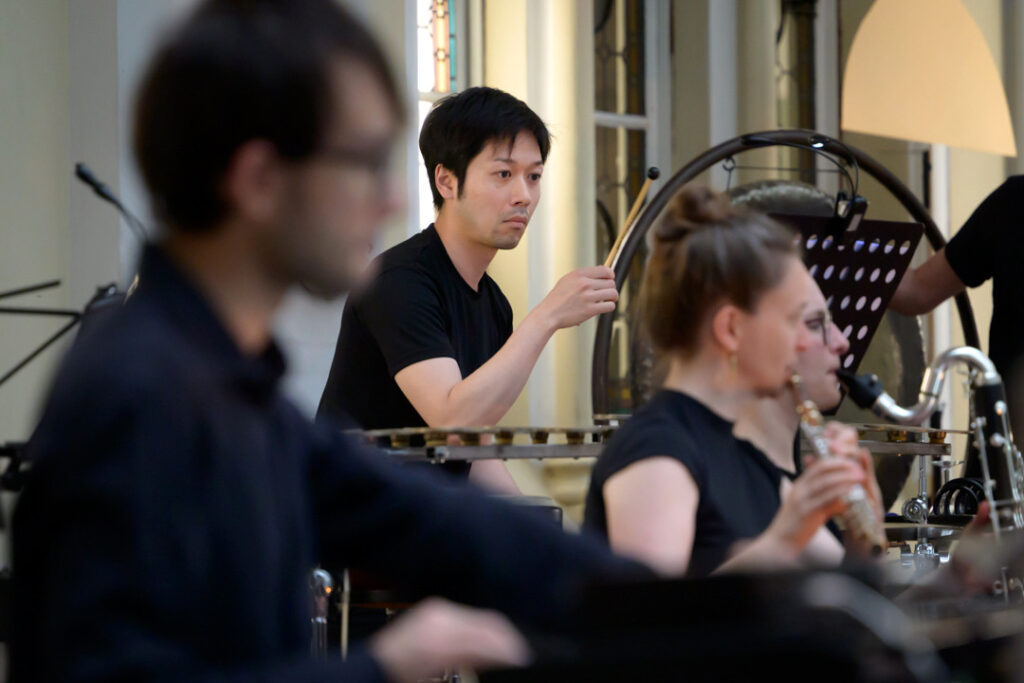 Čo ma však zaujalo bolo, že takýmito voľbami inštrumentácie či dynamiky skladatelia často mieria k chvejivým, krehkým výsledkom (napadá mi Salvatore Sciarrino). Hudba Kobajaši ale podľa mňa kvalitu krehkosti až tak neskúmala – možno skôr rozmanitosť. Aj jemné odtiene boli pritom predovšetkým pevnými prvkami pre ďalšiu výstavbu. Priebeh skladby pritom často pripomínal vlny. V plnom, farebnom zvuku sú pritom dosť zreteľné aj spektrálne východiská skladby. Dôležitú rolu mali husle (David Danel) – aspoň ja som v rámci akustiky priestoru vnímala práve tento part asi najvýraznejšie.