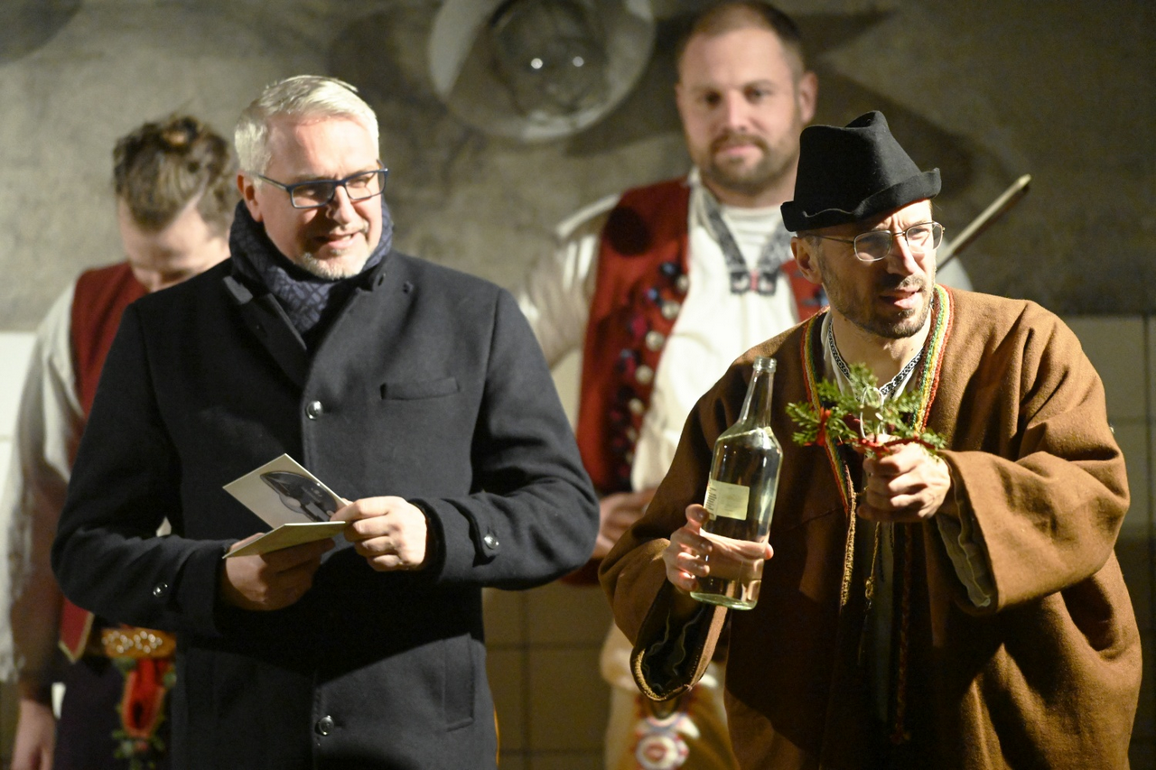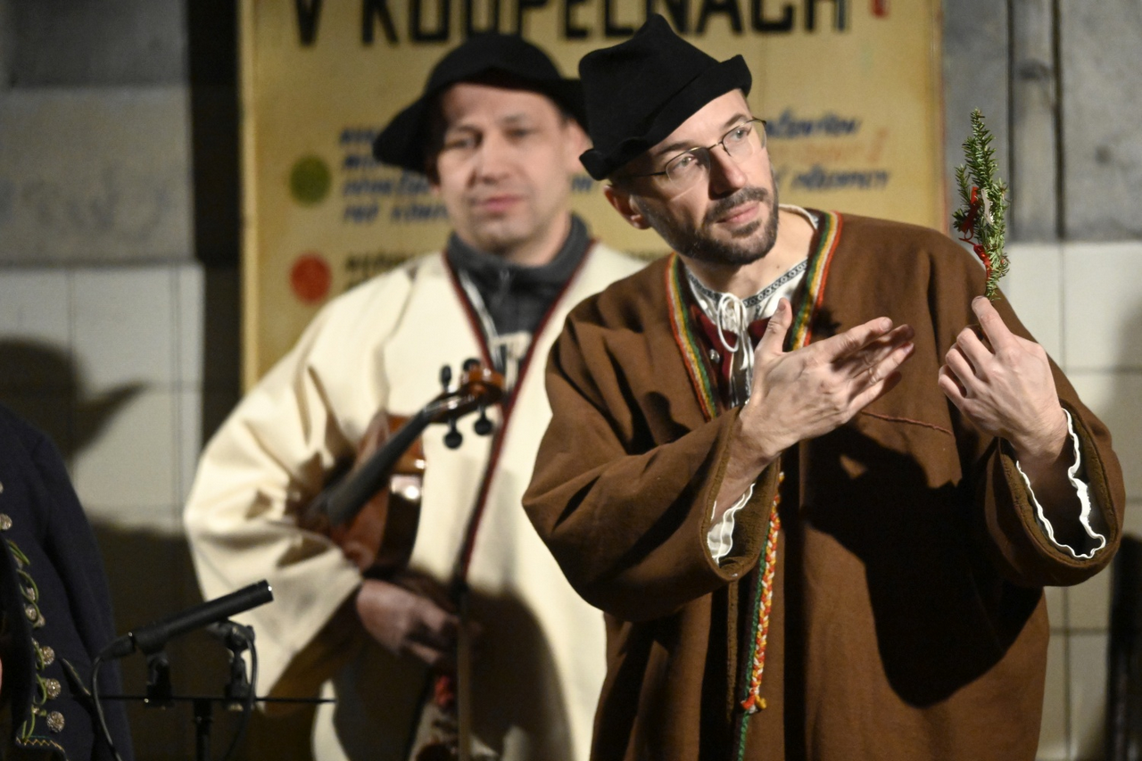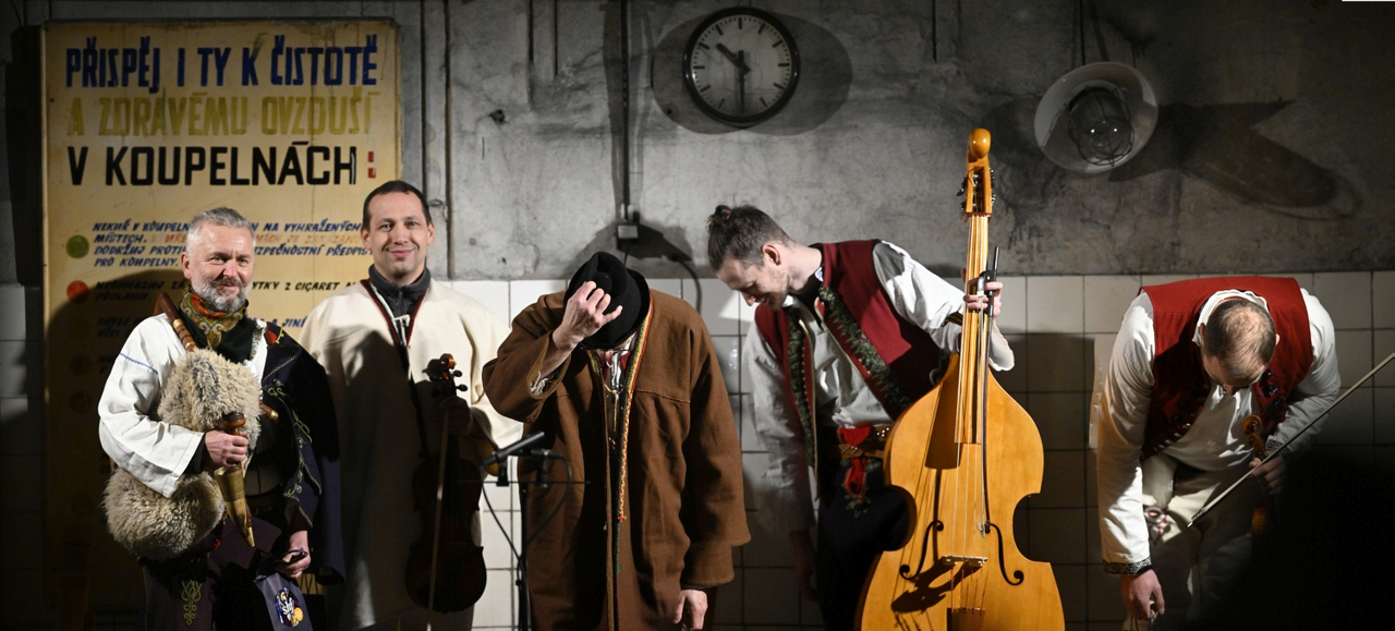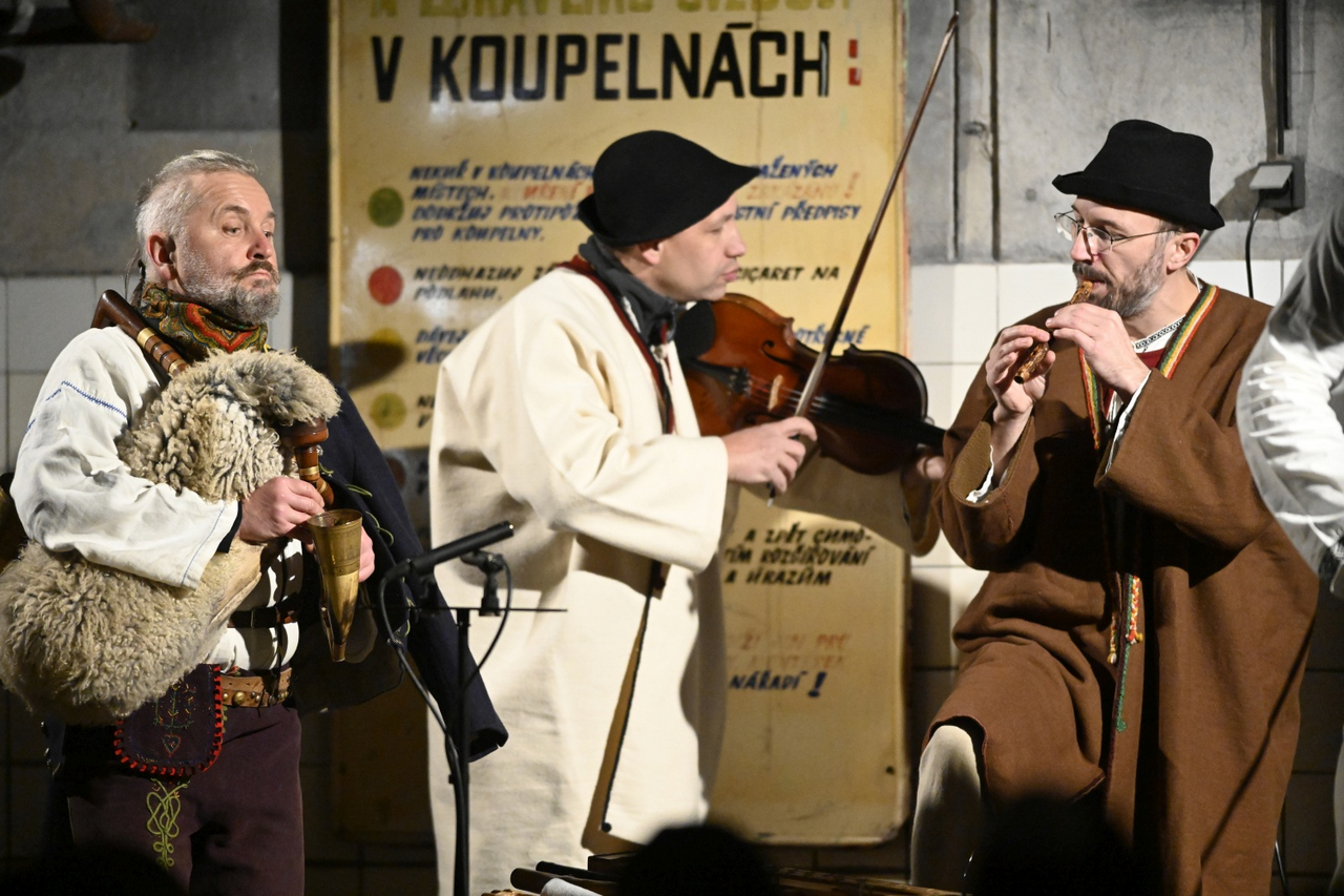 Než muzikanti spustili své beskydské koledy v autentickém podání, vyslechli si diváci obšírné průvodní slovo Mariana Friedla, který svou dráhu aktivního multiinstrumentalisty spojuje už léta s profesí erudovaného muzikologa. Jeho moderace byla skutečně mimořádně zajímavá, co se týče sdělených informací, ale také neobyčejně zábavná, milá a vtipná. „Jestli jsme někde nehráli, tak je to ve sprchách,“ svěřil se například sympatický vypravěč. „Dokonce můžeme přispět každý k tomu, že ty sprchy zůstanou čisté i poté, co odejdeme,“ reagoval na historický nápis na stěně. „Nebude se to ovšem dotýkat tónů, neboť naše nástroje velmi prudce reagují na změny klimatu. Občas se může stát, že budeme muset něco doladit,“ vysvětlil Friedl, načež provedl publikum pestrou dramaturgií koncertu.