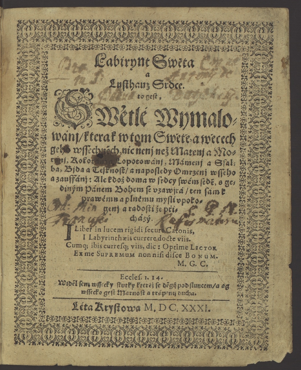 Jan Amos Komenský je v českých zemích coby duchovní Jednoty bratrské spojen především s Přerovem a Fulnekem. Jako nekatolík, výrazná osobnost, na kterou měli spadeno ti, co prováděli rekatolizaci, se však brzy po Bílé hoře musel začít skrývat. Před definitivním odchodem za hranice, do polského Lešna, pobýval mimo jiné v Bílé Třemešné u Dvora Králové, ale předtím hlavně po několik let v Brandýse nad Orlicí, na jednom z panství Karla Staršího ze Žerotína, ochránce Jednoty bratrské. Právě tam dopsal v roce 1623 „Labyrint světa a lusthaus srdce“. Tiskem vyšel spis o osm let později a pronásledovaní nekatolíci ho přijali jako nejmilejší útěšnou knihu.