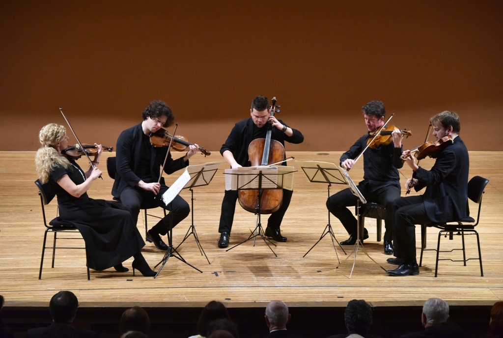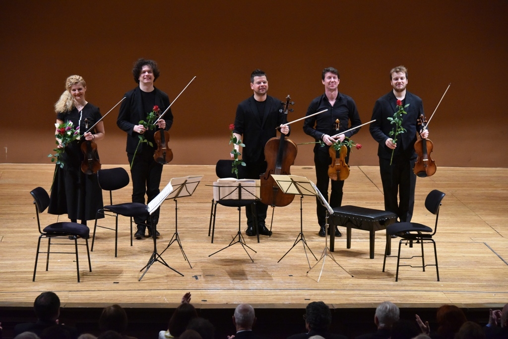 Kvintet Johannesa Brahmsa, v ktorom sa k štandardnému sláčikovému kvartetu pridáva ešte jedna viola (Pavel Nikl), bol v interpretácii včerajších protagonistov veľmi spontánnou, prirodzene plynúcou záležitosťou. Práve v tomto čísle ma upútali viac, najmä zvukovosťou, ktorá akoby bola ešte pestrejšia, a ktorá dielu dodávala potrebné rozjasnené vyznenie. Aj tu sa súbor stránil zbytočne veľkých gest a hráčsky neľahká kompozícia tak v ich prevedení vyznela ako príjemné, priateľské muzicírovanie. Nechýbala citlivosť (Adagio), živosť (Vivace ma non troppo presto-Animato) a hoci by sa po technickej stránke azda našlo pár nedokonalostí, išlo stále o hudobný zážitok mimoriadnej kvality. Nasledujúci veľmi lyricky podaný, podmanivý prídavok z Dvořákovho Kvintetu bol potom skôr ďalším číslom programu než prídavkom: svojim trvaním aj interpretačnou stránkou šlo naozaj o závažnejší počin.