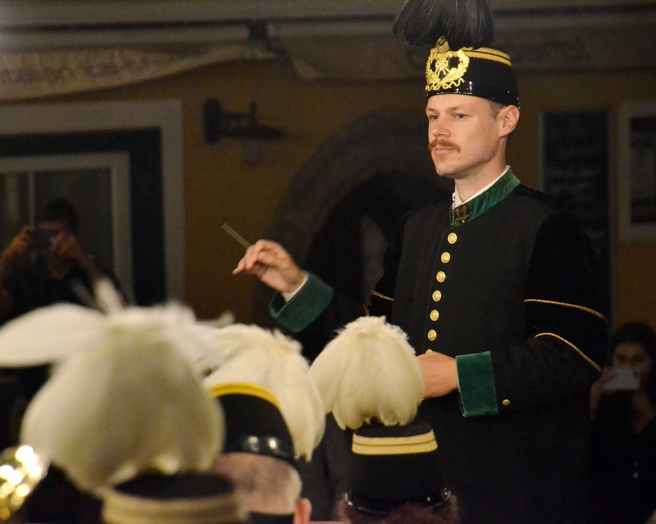 „Na basovou tubu hraje můj starší bratr. A na zvonkohru jeho syn, můj synovec,“ ukazuje do řad muzikantů majitelka našeho penzionu, která také postává mezi posluchači. Klaus Zauner je tento večer speciální výpomocí. Je totiž na rozdíl od většiny ostatních profesionál. Na bicí hraje jako člen orchestru Vídeňské státní opery už patnáct let a tím pádem patří i do tělesa Vídeňských filharmoniků. „Začínal tady v Hallstattu, když mu bylo nějakých osm. Byl ještě malý a nevycházel mu krok, ale pochodoval s orchestrem s bubnem,“ vzpomíná teta. Zřejmě jasný talent. Když se později dozvěděl, že doma už ho nikdo nenaučí víc, než umí, vydal se z hor, šel studovat hudbu. Je teď členem jednoho z nejslavnějších těles světa, ale není prý ani trochu nafoukaný. A když mu z Hallstattu, kde strávil dětství, dali vědět, že chystají koncert na náměstí… a jestli by si s nimi nepřijel zahrát… tak prý ani chvíli neváhal. Ostatně, nebylo to poprvé. Vrací se sem jako domů pravidelně. V roce 2016 při podobné příležitosti převzal stříbrnou plaketu za třicetileté členství v kapele.