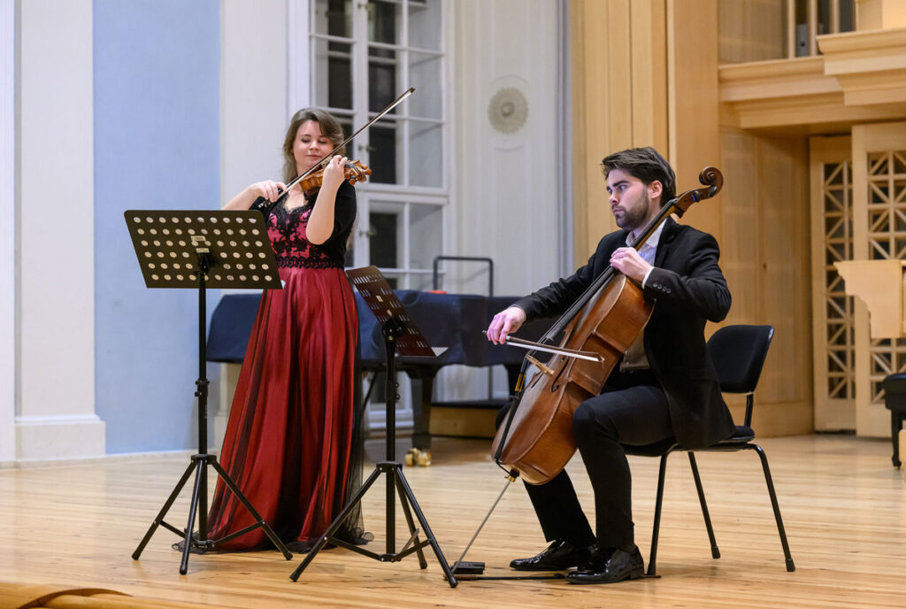 Viktor Kalabis jako vynikající melodik byl představen v Duettinech pro housle a violoncello, op. 67. Čtyři části Introduzione, Danzetta, Serenata a Finale provedla Pavla Tesařová s violoncellistou Jurajem Škodou, členem orchestrálním akademie České filharmonie a studentem HAMU u prof. Ericssona. Zpěvné housle provázelo cello spolehlivými temnými tóny, aby se vzápětí rozezpívalo spolu s houslemi v okouzlující souhře. Taneční rytmus s náležitou dynamikou si užívaly oba nástroje s radostí, náročné party v rukou Pavly Tesařové působily až neskutečně lehce a nic její virtuozitě nestálo v cestě. Violoncello Juraje Škody bylo precizní v doprovodu i sólových vstupech a společná pianissima i forte dodávala Kalabisovým Duettinům skutečnou noblesu.