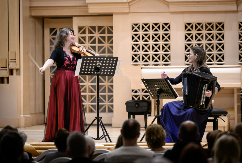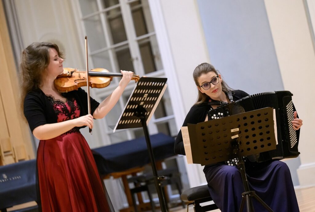 Na závěr zazněla výborně provedená známá skladba Adama Skoumala Shalik v úpravě pro housle a akordeon, jež dala opět prostor vynikající souhře houslistky a akordeonistky. Originální arabský tanec provedly shodně s chutí a energií, která je spolehlivě nesla skladbou pečlivě cizelovanou technikou a nápadité rytmy s půvabnými melodiemi v úžasných flažoletech ve ztišení okouzlily ve zrychlovanému tempu až k báječnému závěru.