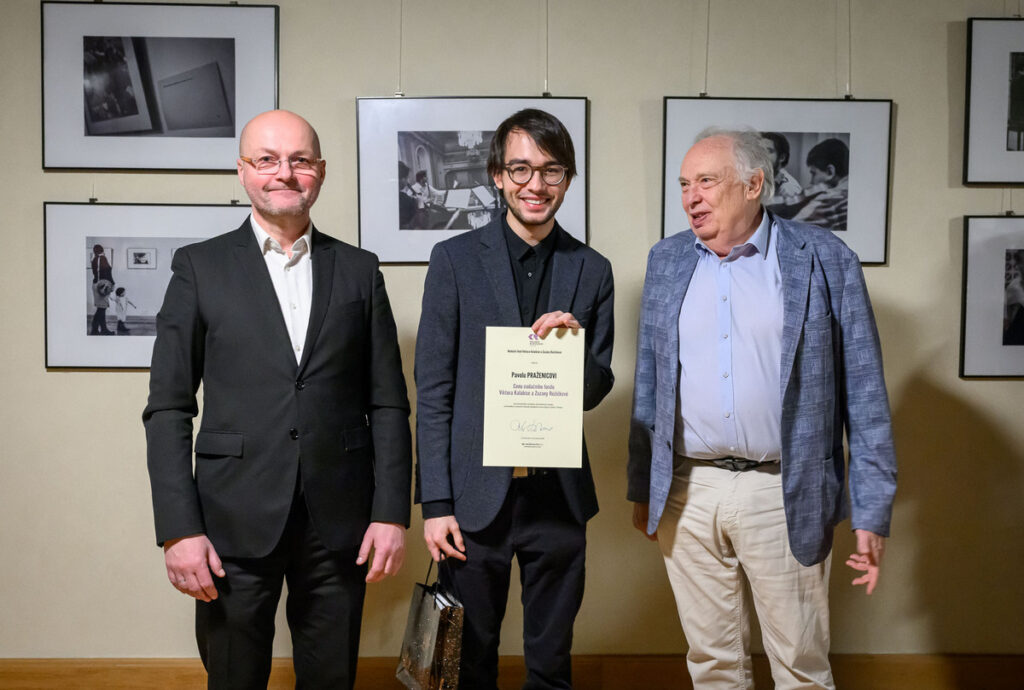 Letošní vzpomínka na paní profesorku dostala v provedení výtečného tria mladých interpretů další impuls v podpoře talentované nastupující generace a setkání v Respiriu HAMU navazovalo na právě doznělý koncert. Nejprve byla udělena Cena Nadačního fondu pro nejlepšího studenta Hudební a taneční fakulty AMU: z rukou děkana HAMU prof. Ivana Klánského jej převzal klavírista Pavol Praženica, student druhého ročníku ve třídě doc. Iva Kahánka. Praženica už nyní vyniká jako sólista, komorní hráč i aktivní organizátor koncertů; byl také jedním ze tří žáků Iva Kahánka na mimořádném společném koncertu (reflexe ZDE) loňského Festivalu Rudolfa Firkušného.