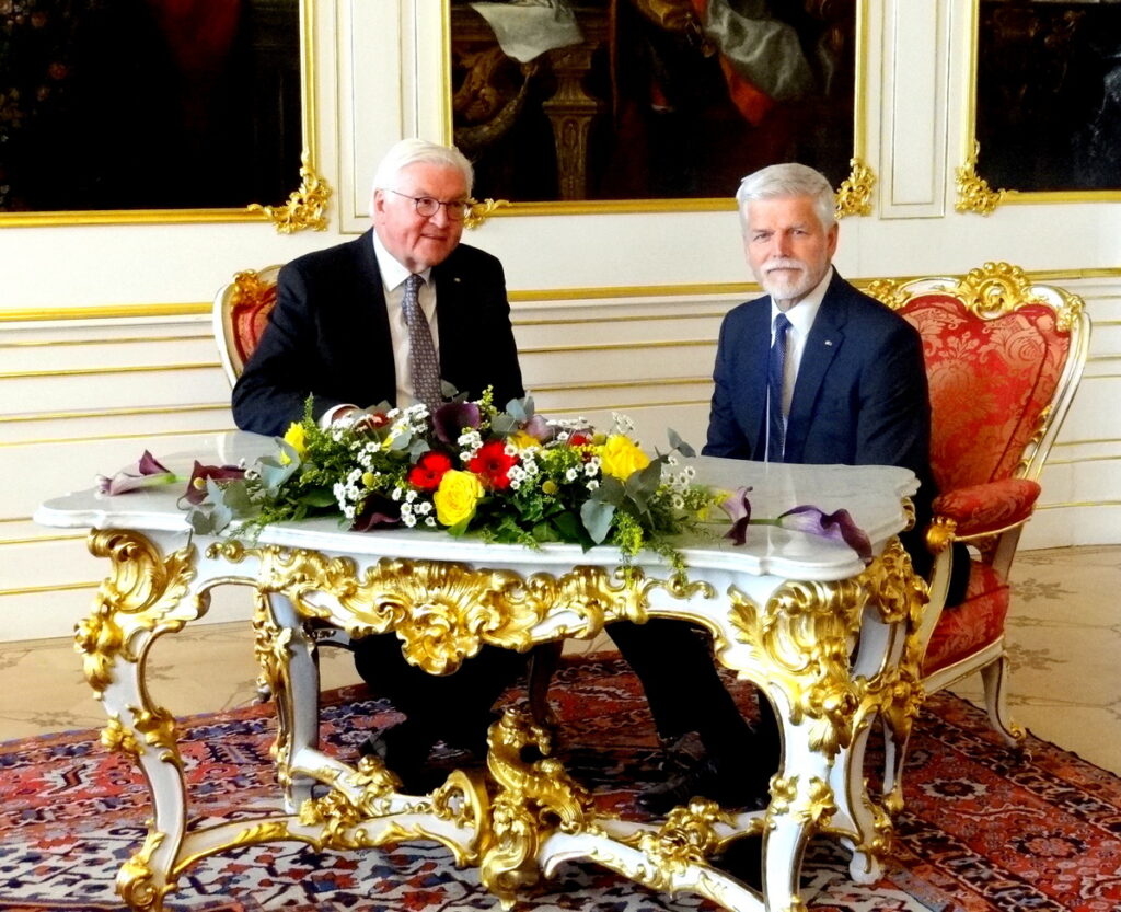 Prezident Petr Pavel přivítal svého německého protějška na tiskové konferenci první den jeho oficiální návštěvy srdečným a pochvalným vyjádřením: „Vážím si toho, že pan prezident navštívil Českou republiku právě při příležitosti dvacátého výročí vstupu České republiky do Evropské unie. Rád bych připomenul ještě další dvě výročí, a sice pětatřicáté výročí pádu železné opony a padesáté výročí našich diplomatických vztahů.“ Ve svém krátkém proslovu prezident Petr Pavel zdůraznil: „Německo je pro nás opravdu strategickým evropským partnerem a jsem rád, že mohu říci, že v poslední době také jedním z nejlepších partnerů. Úroveň našich vztahů ve všech oblastech se skutečně za posledních dvacet let výrazně zlepšila. Strategické partnerství má pro nás naprosto zásadní roli, protože naše státy jsou provázány nejen ekonomicky, historicky a kulturně, ale i na úrovni mezilidských vztahů. Je proto jednou z priorit naší zahraniční politiky, abychom tyto vztahy dále rozvíjeli.“ Ve svém delším projevu prezident Petr Pavel vyzdvihl z pohledu kultury rozvoj kooperace a existenci Česko-německého fondu pro budoucnost a Česko-německého diskuzního fóra, které jsou platformami pro diskuzi a spolupráci mezi občany a zeměmi.