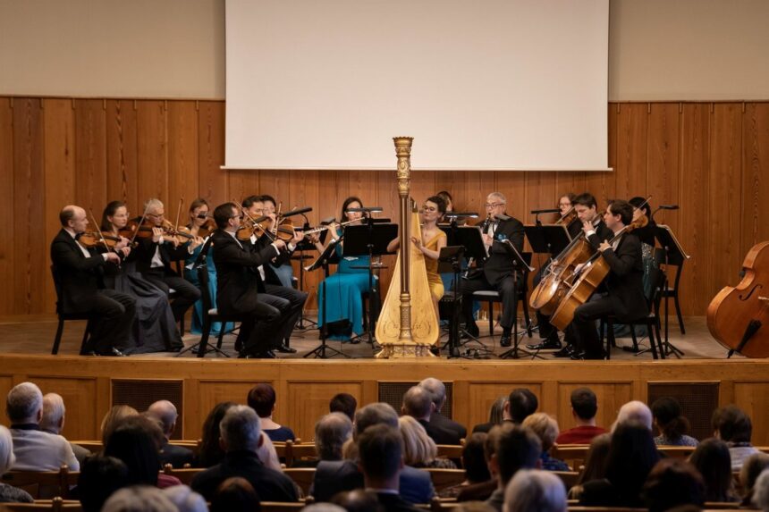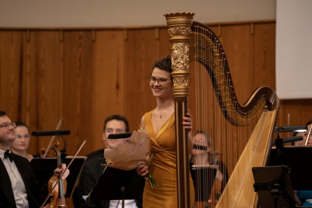 Introdukce a Allegro pro harfu, flétnu, klarinet a smyčcové kvarteto Maurice Ravela z roku 1905 je jedním ze základních kamenů harfového repertoáru, vybroušeným však až k podobě opravdového drahokamu. Do vínku mu tohle zařazení vtělil už sám autor: průnik čistého impresionismu, vyvolaného především nástrojem dovedeným k dokonalosti v 19. století právě ve Francii jeho výrobcem Sébastienem Érardem, a vícevrstvé harmonie nepřestává udivovat a vždy je pro interprety velkou výzvou, byť jde o skladbu menšího rozsahu – její provedení nepřesáhne dvanáct minut. Roxana Hädler, patřící k nejnadanějším českým harfistkám mladé generace, projevila svůj přirozený cit, technickou suverenitu i neobyčejnou vnímavost pro náladu díla, díky čemuž se jí podařilo zcela ovládnout pódium. Buďme však spravedliví i k jejím spoluhráčům – flétna, klarinet a smyčce zněly rovněž úchvatně, celková působivost náročného kousku vynikla i díky tomu, že také v tomto případě byla zvolena verze pro orchestr.