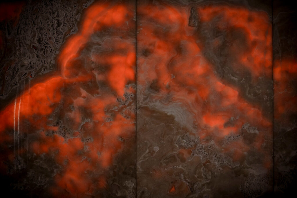 „Když zapadá slunce, prozáří onyxovou stěnu tak, že na její zadní stěně září červené ornamenty.“