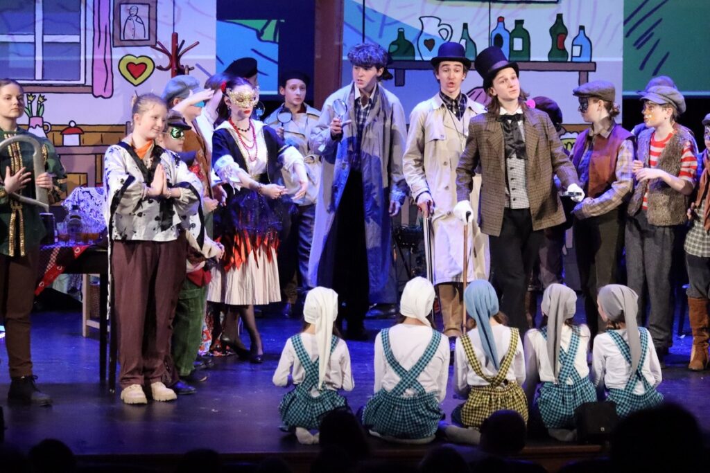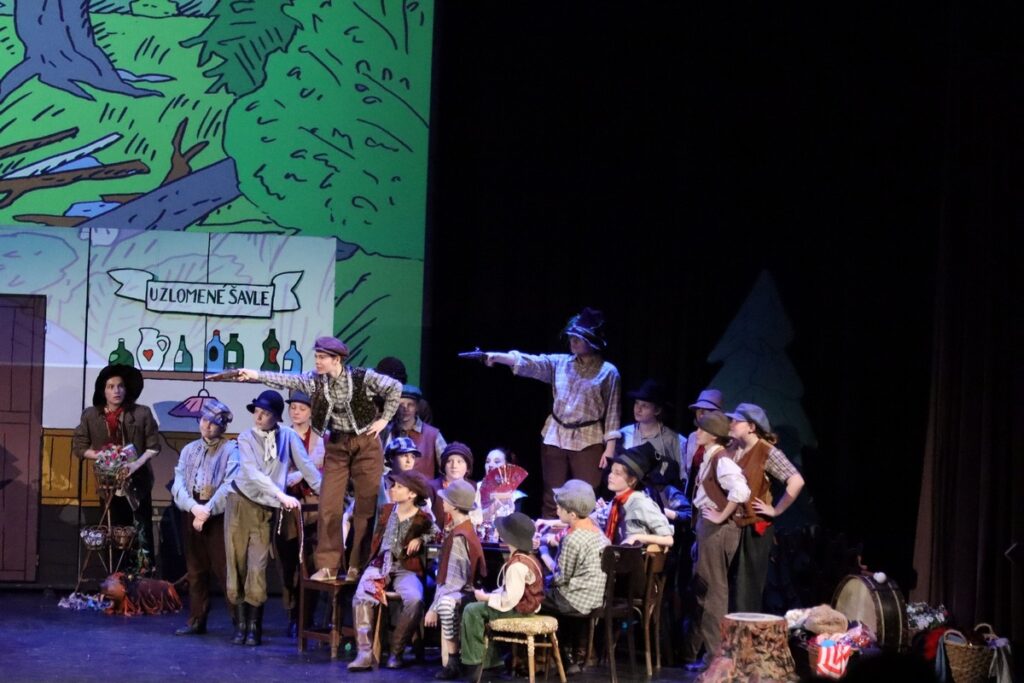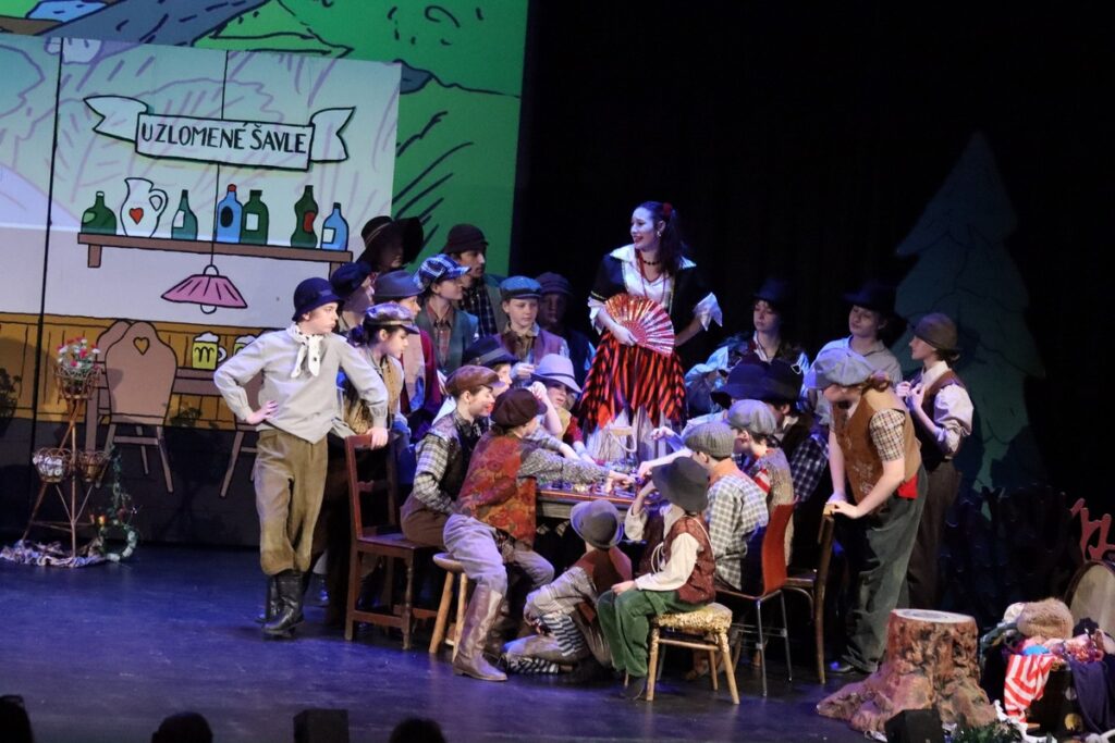 Mezi pozitiva zvoleného inscenačního přístupu je možné přičíst rovněž úzký kontakt jeviště s hledištěm, kdy děti v hledišti mají neustále na očích svoje hravým způsobem se realizující vrstevníky. V mnohých z nich to nepochybně vzbuzuje i touhu zpívat a hrát si také tak. V inscenaci Dětské opery Praha jsou téměř všechny role obsazeny dětmi, které jeviště zaplňují po celé představení. Ty nejmenší nalézají v hojném počtu své uplatnění ve sborových číslech (sbormistr Ondřej Kunovský), těm starším, již dospělým, jsou přiděleny role sólové. Je jich celkem patnáct, jmenujme tedy alespoň ty nejvýraznější: Pradědeček – David Maxa, Lotrando – Mariana Němcová, Kokotička – Veronika Čejková, Šenkýřka – Michaela Vernerová, Lord Havelock – Ondřej Nehasil, Sherlock Holmes – Adam Kořínek, Hrdlořez, Loutnista – Alice Pavelková.