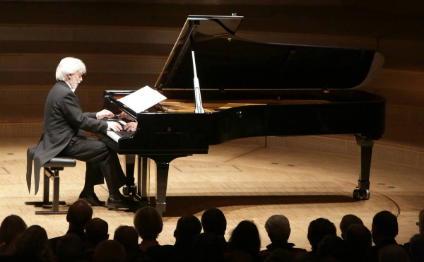 Překvapením ovšem není konec. Na pódiu stojí vedle sebe tři (!) koncertní křídla. Všechna samozřejmě se značkou Steinway & Sons. Mistr přichází s bezdrátovým mikrofonem v ruce – takto bychom čekali spíš moderátora než sólistu – a v uvolněném postoji čeká, až dozní vítací potlesk. Publikum ho ovšem zdraví jako svého, nedočkal by se. S úsměvem se hlásí o slovo a pak praví, že je už nějakou dobu „v důchodu“ a že tedy už nedává žádné koncerty. Dnes to bude „setkání s přáteli“.