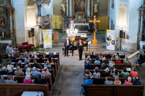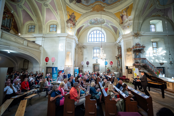 Kroky návštěvníků festivalu Za poklady Broumovska vedly 12. srpna na návrší nad řekou Stěnavou do obce Martínkovice, jedné z lánových vsí, které v Broumovské kotlině vznikaly ve 13. století. Uprostřed hřbitova tu stojí kostel sv. Jiří a Martina, ten jako jediný ze skupiny broumovských kostelů není dílem otce a syna Dientzenhoferových, ale stavitele Martina Allia. Přímo pro tento koncert napsal rezidenční skladatel letošního ročníku festivalu Jan Kučera písňový cyklus Písně trpělivé a píseň Mnichova řehole. Ty zazněly společně s dalšími písňovými cykly ve výjimečném podání basbarytonisty Daniela a klavíristy Lukáše Klánských.
