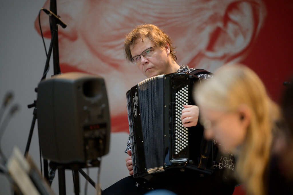 Orchestr Berg organizoval svoj jesenný koncert v spolupráci s HAMU, spolu s ktorou privítal spomínaného Veliho Kujalu. Akordeonista, ktorý hrá na štvrťtónový akordeón, sa stal kľúčovým hráčom v uvedení Haasovej kompozície – a keďže nejde o celkom bežný nástroj, dostal na úvod priestor predviesť sa aj sólovo. Práve použitím štvrťtónov bol vlastne prepojený celý program. Inak však išlo o skladby dosť rozmanité – technicky, zvukovo, esteticky aj obsahovo.