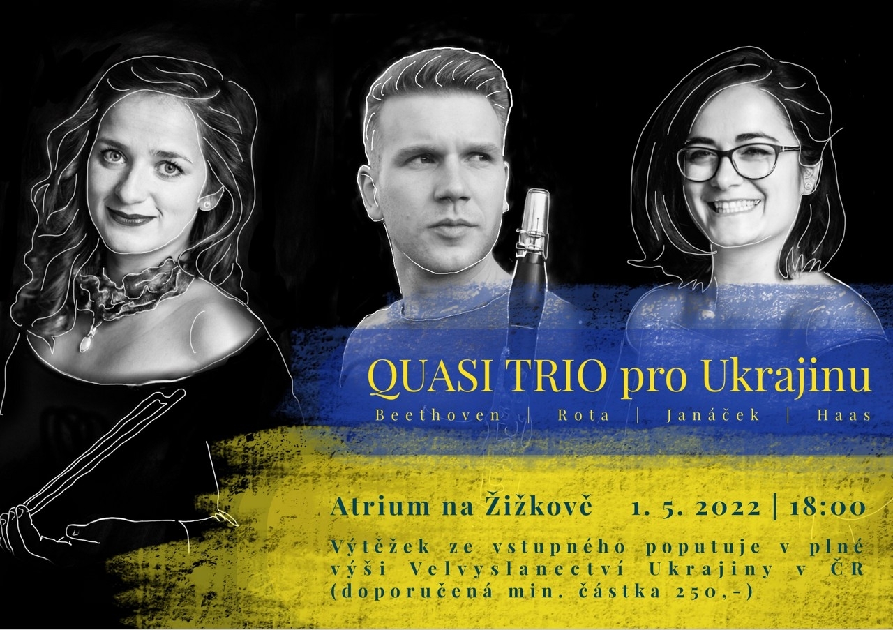 „Jelikož ani nás nenechávají chladnými válečné hrůzy na Ukrajině, rozhodli jsme se v rámci svých skromných možností přispět k vlně pomoci. Ve spolupráci se žižkovským Atriem pořádáme prvomájový koncert, jehož celý výtěžek bude věnován Velvyslanectví Ukrajiny v ČR,“ uvádí Quasi Trio s tím, že připravilo přibližně hodinový pestrý program, jako vzácný host vystoupí houslistka Natalia Shumeyko, která nedávno přicestovala do Prahy z Kyjeva.
