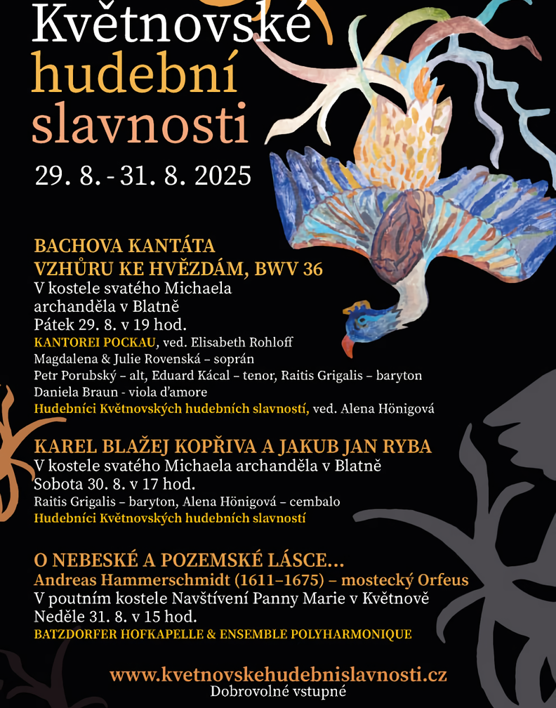 V roce 2025 třídenní akce odehrávající se ve dnech 29. až 31. srpna v lokalitě Květnov blízko Chomutova oslaví hned několik významných výročí. Zaprvé 240 let od úmrtí skladatele a varhaníka Karla Blažeje Kopřivy (1756–1785) uvedením jeho varhanního koncertu i árií z jeho duchovních skladeb zkomponovaných pro nedaleký Osecký klášter. Novodobá premiéra cembalového koncertu poctí dalšího oslavence roku Jakuba Jana Rybu (1765–1815). Zachované orchestrální party k tomuto dílu slouží jako východisko k rekonstrukci sólového partu nebo alespoň k historicky poučené reakci na originální tvorbu tohoto autora. Renomovaný barokní soubor Batzdorfer Hofkapelle, dlouhodobý partner přehlídky, zase připomene 350. výročí mosteckého rodáka Andrease Hammerschmidta (1611–1675). Průřez jeho duchovní tvorbou protkanou italskou melodikou i svěžími instrumentálními kompozicemi nechá nahlédnout, proč byl tento vynikající skladatel ve své době tak populární, a Batzdorfer Hofkapelle spolu s Ensemblem Polyharmonique tak završí dlouholetý výzkum, který byl tomuto skladateli v posledních letech věnován.