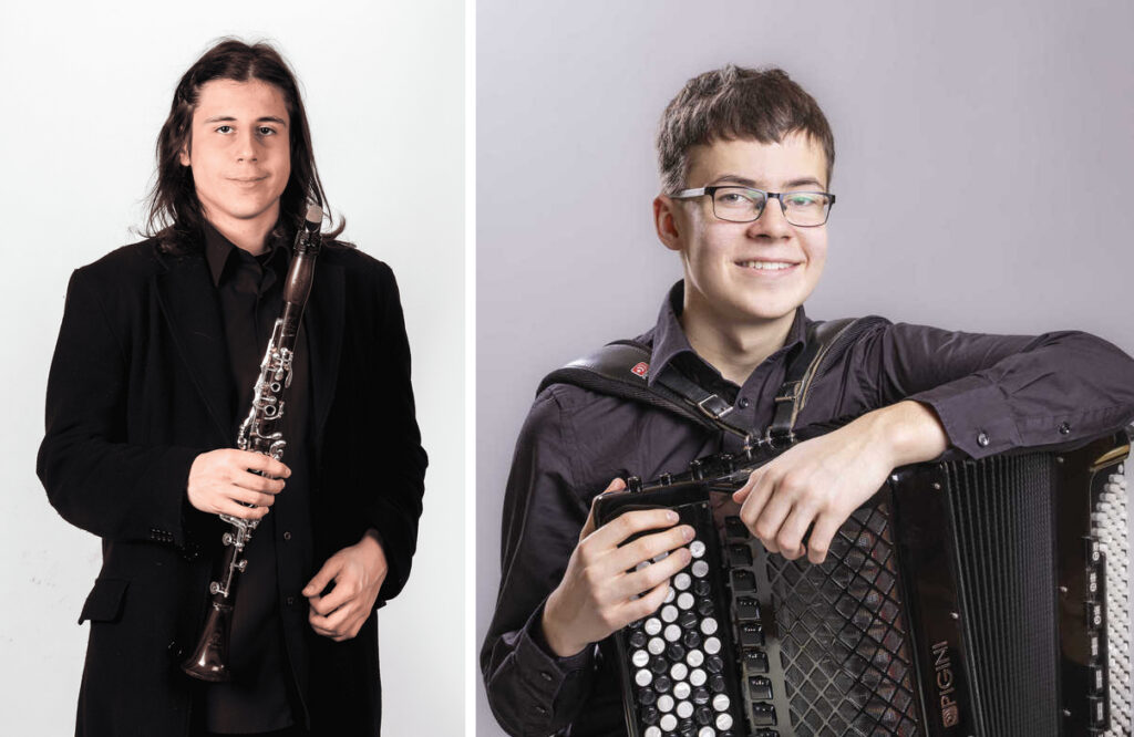 Český klarinetista Otakar Antonín Štefan patří k mladé generaci interpretů, kteří spojují soutěžní úspěchy s intenzivní koncertní činností. Studium na Pražské konzervatoři doplňuje účastí na mezinárodních kurzech a soutěžích, kde pravidelně získává ocenění v sólové i komorní hře. Akordeonista Viktor Stocker reprezentuje nástroj, který se v klasickém koncertním prostředí prosazuje stále výrazněji. Vedle interpretační činnosti se věnuje také skladbě a pravidelně vystupuje na významných koncertních pódiích i festivalech v České republice i zahraničí. Stocker spolu se Štefanem byli finalisty loňského ročníku Concertina.