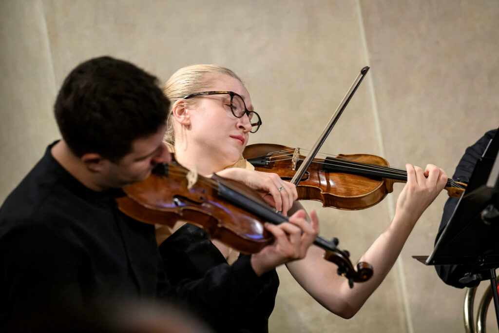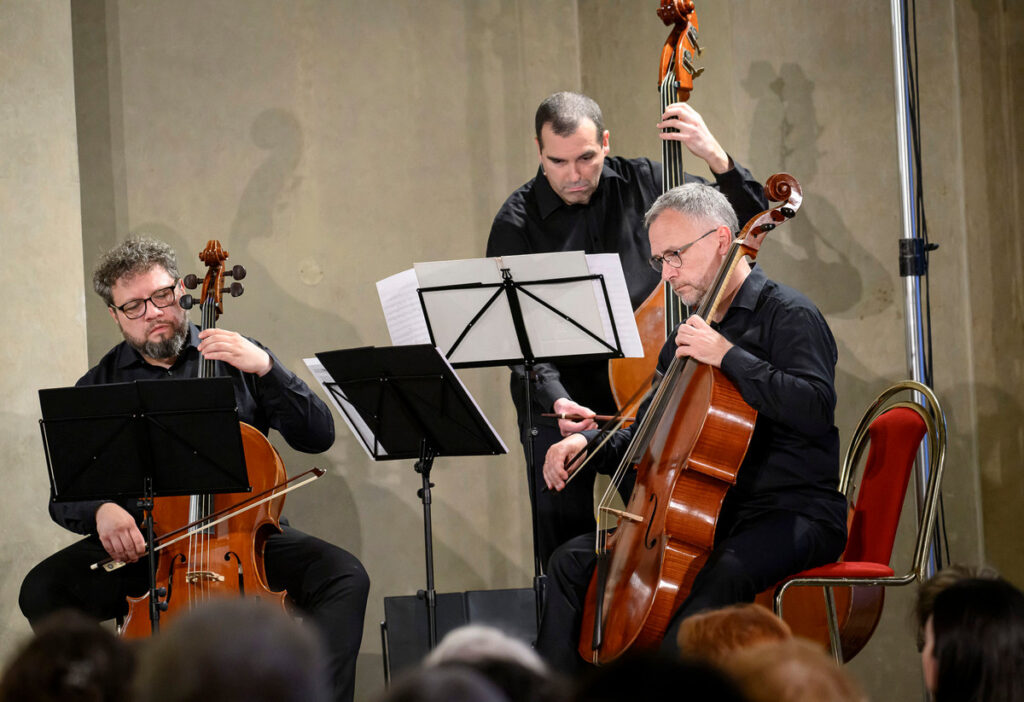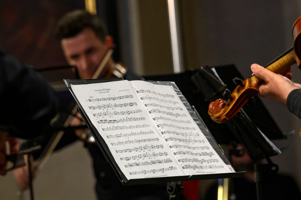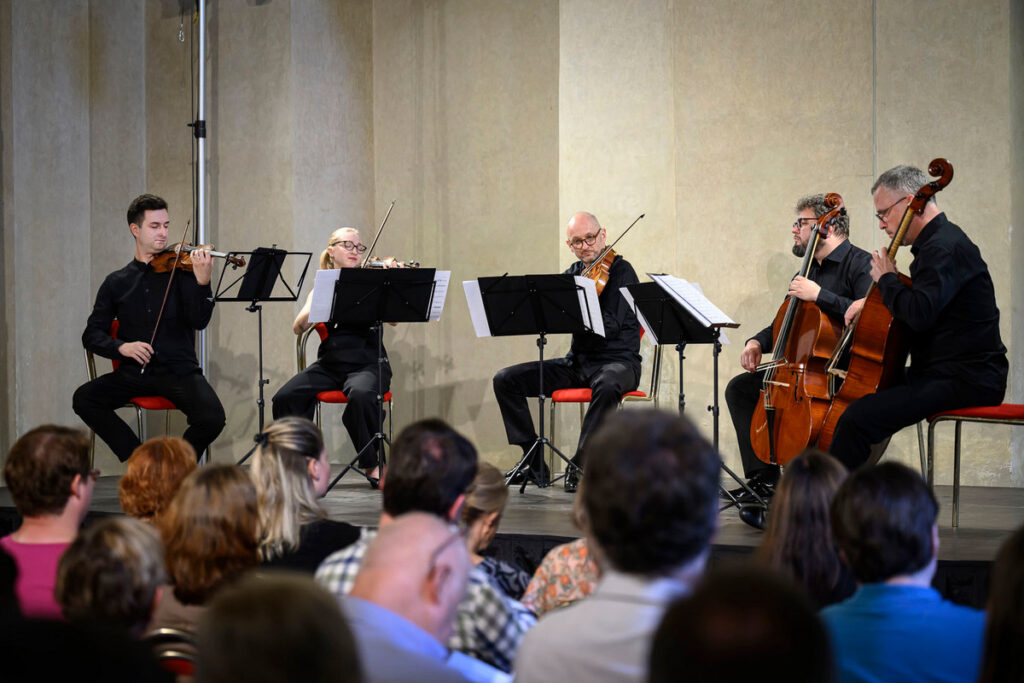 Dění na podiu zahájilo kvinteto provedením úpravy předehry k opeře Figarova svatba od Wolfganga Amadea Mozarta v úpravě Kajetána Fogla. Podle očekávání Mozartova hudba újmy neutrpěla, ba zněla naopak mile domácky s průzračnou harmonií. V kvintetu zasedli k pultům Bartłomiej Fraś a Vida Bobin-Sokołowska (housle), Dominik Dębski a Andreas Torgensen (violy) a umělecký vedoucí Jarosław Thiel (violoncello). Nedlouhá kompozice uvedla druhou úpravu skladby klasika, totiž modifikaci Sonáty pro violoncello a klavír F dur, op. 5: č. 1 od Ludwiga van Beethovena. Instrumentaci provedl Ferdinand Ries. Soubor doznal proměny u viol, svůj pult opustil host souboru Andreas Torgensen a na podium přišel k dosavadnímu další violoncellista Bartosz Kokosza. Soubor hrál s jasně nesenou melodií v houslích, náležitým frázováním, uvážlivou dynamikou a výstižně voleným rytmem. Vizuální dojem potěšila smyková kázeň souboru a vybrané tempo způsobilo vhodnou plynulost hudebního toku. Zajímavý efekt v modifikované violoncellové sonátě přineslo souznění hlasů v nižší poloze připomínající hukot vodního toku. V hutné sazbě úpravy byl i prostor pro něžnou pasáž.