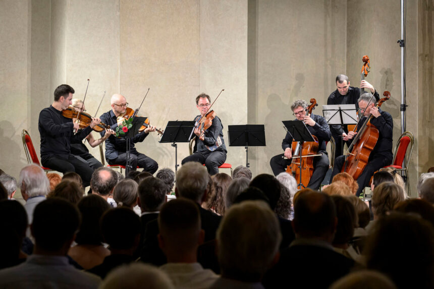 Program rozdělila přestávka, po které se soubor vrátil k hudbě Wolfganga Amadea Mozarta, kterou reprezentovala slavná árie z opery Figarova svatba Non più andrai, farfallone amoroso. I zde ansámbl interpretoval věrně s kreativně skotačivým tempem, spořádaným rytmem a náležitou dynamikou. Finále programu patřilo romantické skladbě polského komponisty Ignace Felikse Dobrzyńského. Jeho Smyčcový sextet Es dur, op. 39 z roku 1841 přivedl na podium sestavu souboru o dvojích houslích, viole, dvou violoncellech a kontrabasu, na který hrál Janusz Musiał. Čtyřvětá kompozice Dobrzyńského je invenčně zdařilou záležitostí, která si rozhodně zaslouží pozornost. Soubor ji naplnil poutavou interpretací a zaujetím vědom si hrdé prezentace národních prvků. Přesvědčil také o důvěrné znalosti romantického ducha skladby a interpretačně konal takřka přehlídkově s důrazem na charakteristiky jednotlivých vět. V provedení souboru byla cítit romantická uvolněnost, nástroje podávaly furiantskou melodiku a v souborové hře zněla hudba s naplněnou zvukovostí. V Menuetu vystihl soubor salónní charakter a s bravurou vedl motivickou práci. Mimořádně tklivou náladou naplnil třetí větu Elegii a do Finále napřel soubor všechen um do práce s dynamikou, agogikou a výrazem, který vyústil v seriózní bohatou zvukovost.