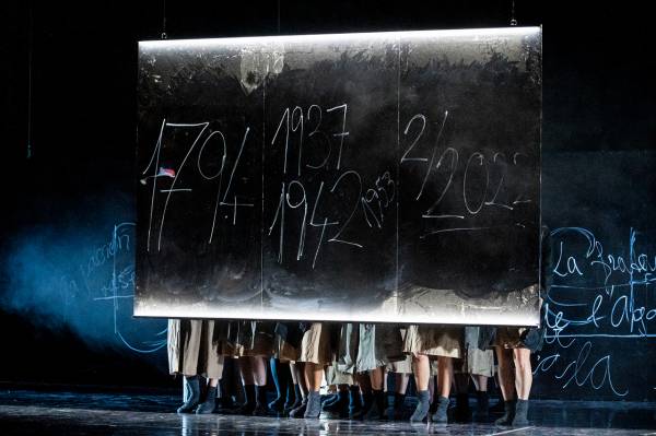 Po všech stránkách zbytečná smrt šestnácti žen, které nicméně svůj osud, v roce 1794 ve Francii bohužel nevyhnutelný, přijaly s důstojností. Karmelitky vysílají poselství o marnosti i o hrdinství daleko do budoucnosti. Letopočty, které se objevují na velké tabuli, připomínají podobné opakující se tragické momenty lidských dějin. Mimo jiné druhou světovou válku, pak padesátá léta v době komunismu… a k tomu také únor letošního roku, kdy z podobně ďábelsky nesmyslného rozhodnutí Ruska začali stejně zbytečně trpět nevinní lidé v sousední zemi. Liberečtí neodolali a ve své komorní inscenaci bez velkého patosu byli, způsobem vlastním divadlu, aktuální.