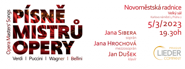 Sólistky oper Národních divadel v Praze a Brně – sopranistka Jana Sibera, loňská držitelka ceny Thálie, a mezzosopranistka Jana Hrochová, uvedou v neděli 5. března písně a cykly významných operních skladatelů. Za klavírem usedne klavírista a skladatel Jan Dušek. Koncert se bude konat v Novoměstské radnici od půl osmé večer. Všechny písně budou předneseny v italských a německých originálech, doplněny promítanými českými titulky.