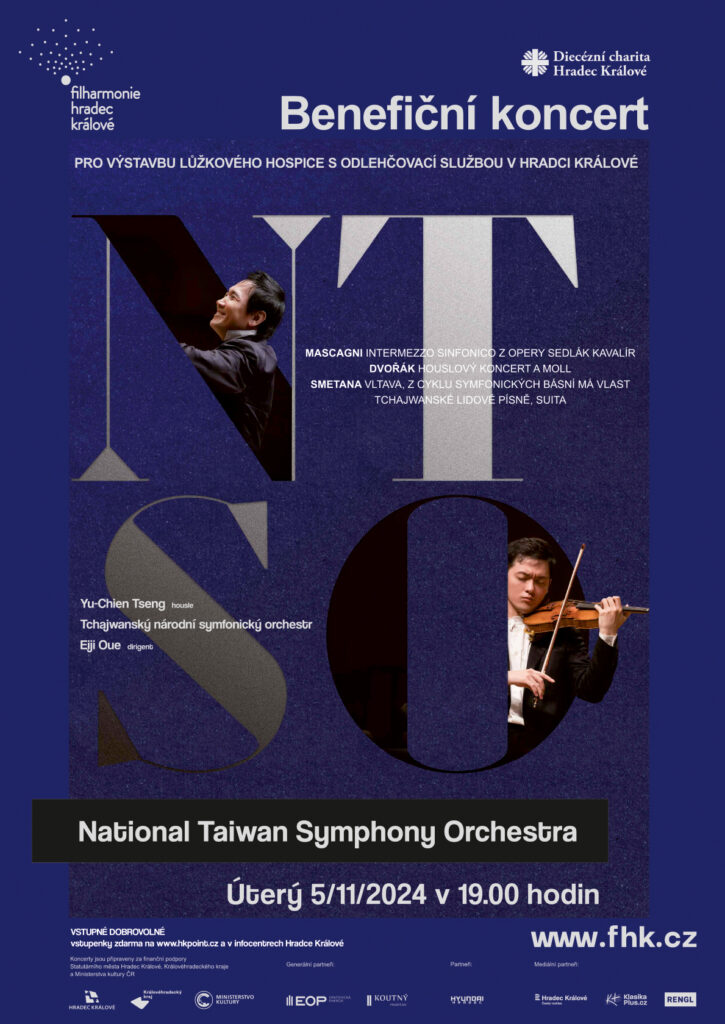 Mimořádný koncert je poté v plánu 5. listopadu. Filharmonie Hradec Králové a Diecézní charita Hradec Králové připravují benefiční akci Ozvěny Tchaj-wanu, na které se publiku představí Tchajwanský národní symfonický orchestr se sólistou, houslistou Yu-Chien Tsengem. Koncert zazní pod taktovkou dirigenta Eiji Oue. Účelem je pomoc při realizaci stavby nového lůžkového hospice v Hradci Králové. Dle tiskové zprávy, jejíž informace se liší od těch dostupných na stránkách orchestru, zazní Mascagniniho Intermezzo Sinfonico z opery Sedlák kavalír, dále Dvořákův Houslový koncert a moll, Smetanova Vltava z cyklu Má vlast a Suita z Tachajwanských lidových písní.