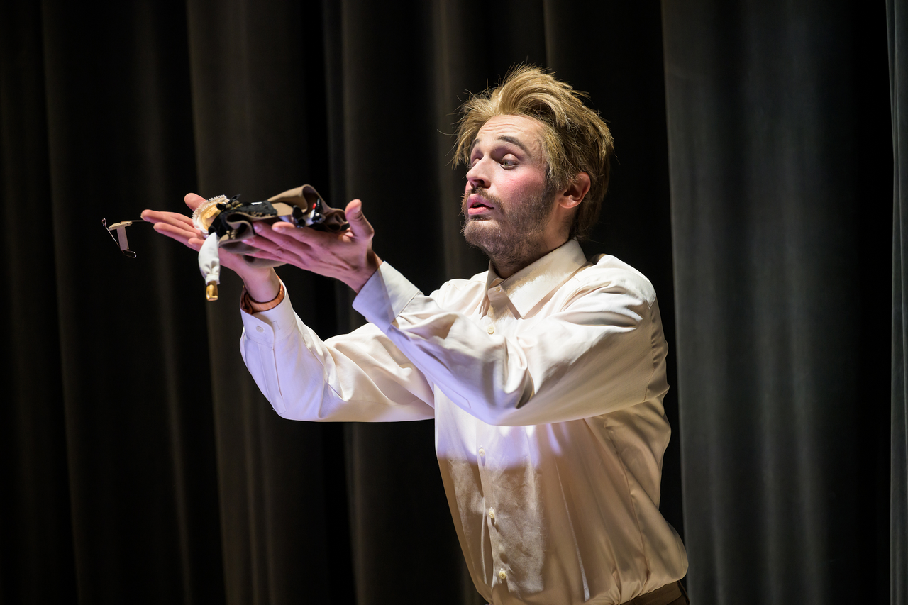 Pražské zpracování k Hindemithově hudbě vskutku chová úctu. Původní dílo vykazuje poměr 40 minut hudby, 90 minut mluveného slova. Česká verze? 40 minut hudby a 20 minut mluveného slova. Šéfdramaturg Ondřej Hučín text musel škrtat nemilosrdně…