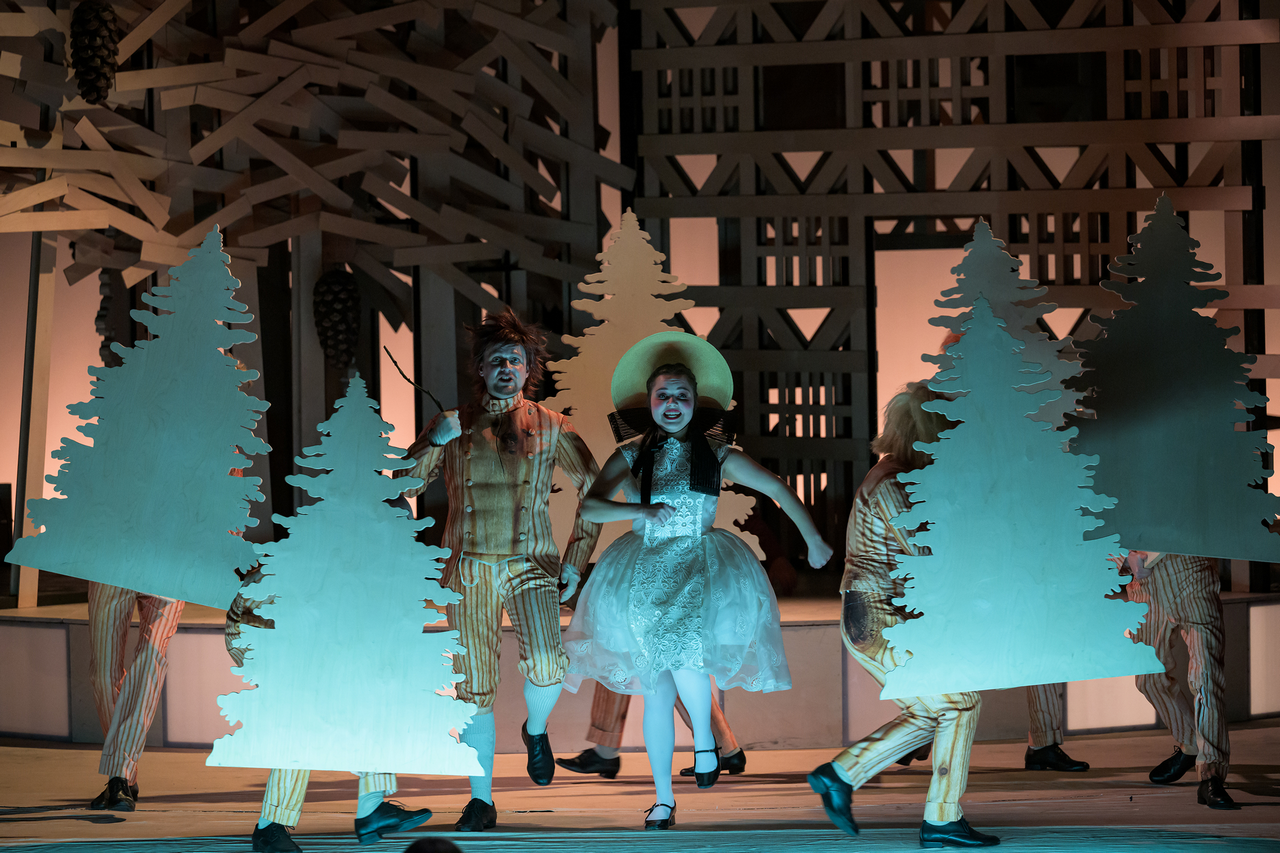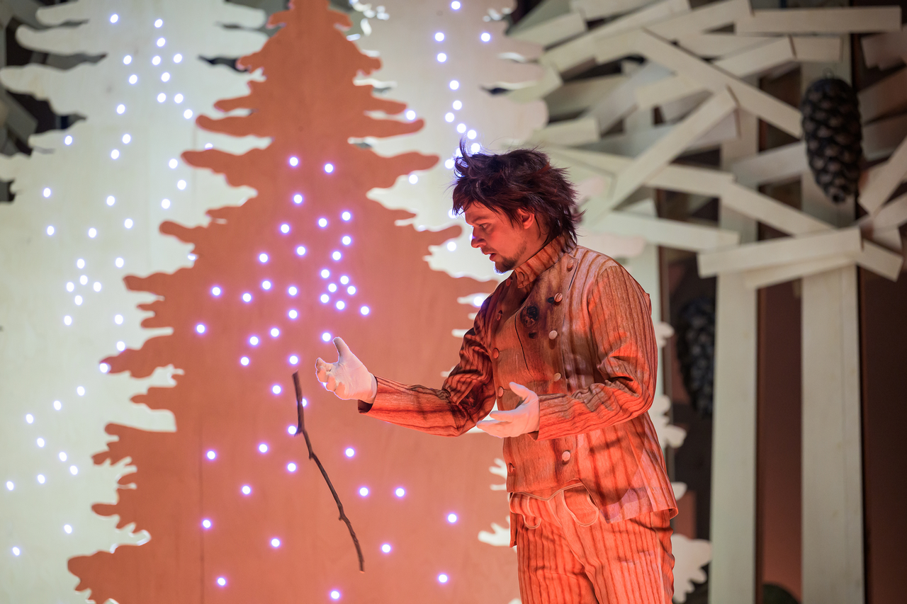 Předností inscenace je jistě její mnohotvárnost a pestrost: tanec, zpěv, pantomima, loutkoherectví (loutkář David Bosh)… Pozornost dětského posluchače je udržována mnoha různými způsoby a děti hodinové představení (až na mírné ošívání v závěru) zvládly v tichosti. Pěkné jsou detaily často doprovozené zvuky z orchestru, například rozhýbávání LouTkáčkových právě oživlých končetin za glissand kontrabasu, svědčící o tvůrčím zápalu týmu tvůrců. Vizuál (scéna a kostýmy Eva Jiřikovská, světelný design Karel Šimek) je přehledný a pěkně funkční, např. nasvícení sněžení v konci efektivně navozuje smírnou atmosféru, byť zima je ve hře symbolem smrti; oblečení loutek v barvě dřeva s jeho typickým rýhováním a naznačenými ohoblovanými suky je také půvabné. Hindemithova hudba je plná invence a zjevně psána s velkým kompozičním nadhledem – zdatný skladatel se pozná podle schopnosti napsat jednoduchou a zároveň nápaditou hudbu. Pohybově i herecky je akce přesvědčivá a záživná. Patrná byla snaha protagonistů o klátivě „dřevěné“, mechanické pohyby à la loutky, kterou někteří přetavili v roztomilý pohybový výstup.