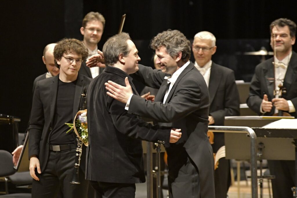 Úvodní Předehra na hebrejské téma Sergeje Prokofjeva (1891–1953) byla zkomponována počátkem roku 1919 v Americe, po jeho doslova dobrodružné cestě z bolševického Ruska přes Sibiř do Japonska, San Francisca a konečně do vytouženého New Yorku. Podobně jako Sergej Rachmaninov, který opustil Rusko ve stejném roce 1917, doufal i Prokofjev v lepší podmínky pro svou uměleckou dráhu, což se ovšem vyplnilo pouze částečně. Vzniku Předehry na hebrejské téma (bezprostředně po dokončení opery Láska ke třem pomerančům) předcházelo poněkud bizarní shledání s ruským židovským souborem Zimro, jehož členové, židovští emigranti, byli vesměs Prokofjevovi spolužáci z petrohradské konzervatoře. Hlavní „hvězdou“ šestičlenného souboru byl klarinetista Simeon Bellison, pozdější první klarinetista Newyorského symfonického orchestru. Na jeho podnět a na základě jím poskytnutého zápisníku židovských lidových písní zkomponoval Prokofjev během velmi krátké doby svou Předehru na hebrejské téma, kterou mnohem později, v roce 1934, instrumentoval pro symfonický orchestr (op. 34a). Faktem ovšem je, že původní komorní partitura pro klarinet, smyčcový kvartet a klavír působí zemitěji, autentičtěji a lépe evokuje typickou „klezmerovskou“ náladu než orchestrální verze (viz. úžasné provedení s Marthou Argherich a klarinetistou Yevgenym Yehudinem). Nicméně Filharmonie Hradec Králové se této skladby v přehledné sonátové formě zhostila s náležitou vehemencí, stylovou autentičností a citlivým odlišením radostně taneční a naopak nostalgické polohy židovské hudby. Hlavní „tíha“ této autenticity spočívala na sekci dřevěných dechových nástrojů, pochopitelně především klarinetu, což ovšem platilo v podstatě pro celý večerní program. Tento nelehký úkol splnili hudebníci hradecké filharmonie naprosto přesvědčivě, což svým závěrečným děkovným gestem naznačil i dirigent Kaspar Zehnder.