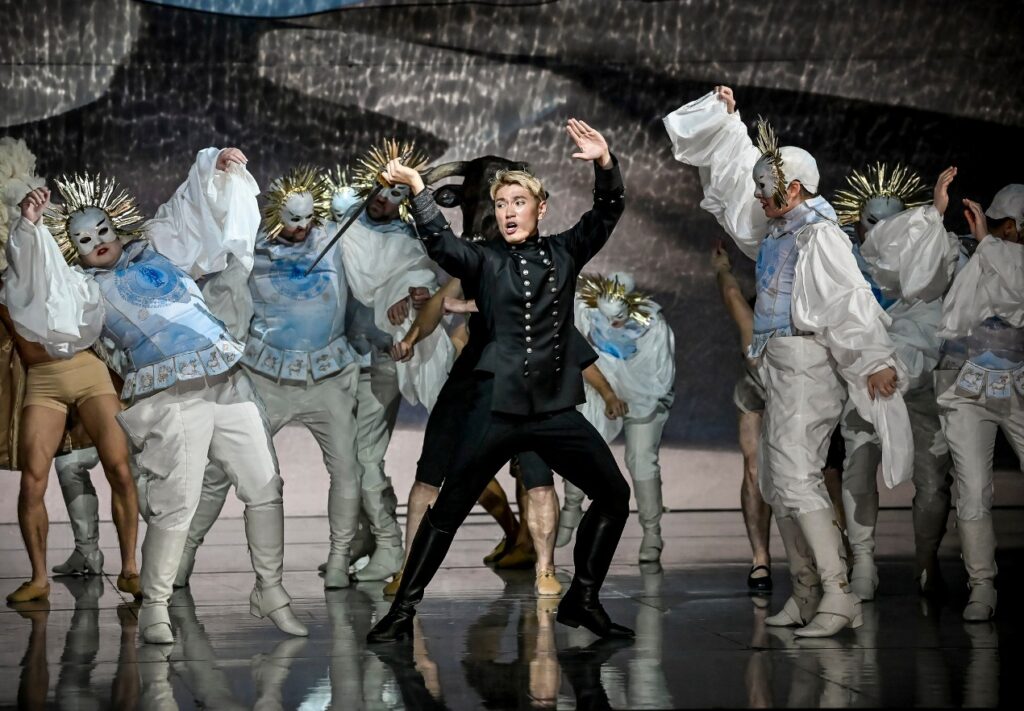 Těmi ostatními byli skvělá mladá sopranistka Doubravka Novotná, efektně vystupující kontratenorista Kangmin Justin Kim, jako Bradamante v převleku výborná Monika Jägerová a s nimi Andrea Široká, Tomáš Král a Ondřej Koplík. Plus řada pohádkových bytostí, tanečníků se zvířecími hlavami, z nichž nejoriginálnější pohybovou studií je bezesporu pštros a nejkomičtější figurou tučňák… Heřmanově manýristicky výpravné inscenaci nechybí poetické obrazy, barvitost a nápaditost, ale naštěstí ani humor.