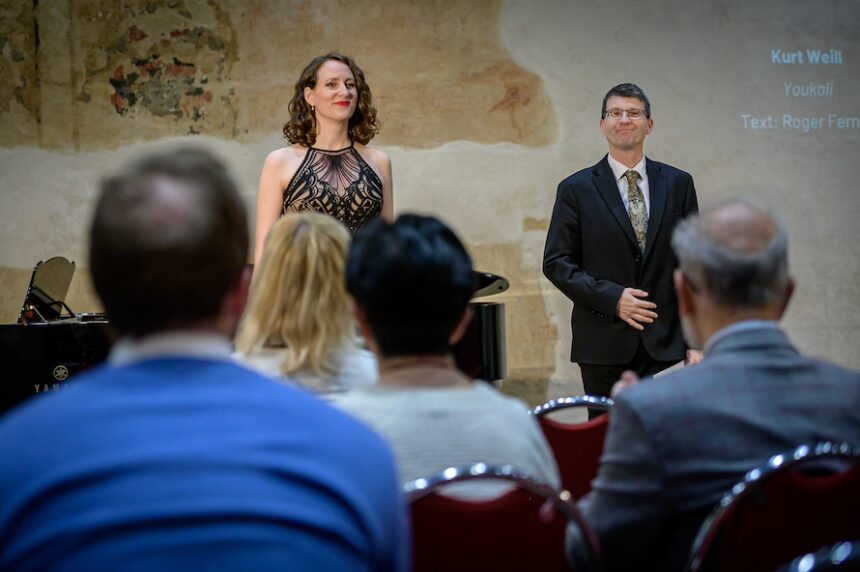 Spolek Lieder Society, který u nás dlouhodobě a systematicky propaguje a uvádí repertoár umělecké písně, pro sobotní večer na Novoměstské radnici připravil program, který byl odbočkou z jeho standardně uváděného repertoáru. Zůstal sice u písní, ale vsadil na lehčí múzu, konkrétně na písně kabaretní a kabaretem inspirované. Účinkovala dvě písňová dua: sopranistka Magdaléna Hebousse s klavíristou Ahmadem Hedarem a mezzosopranistka Dominika Škrabalová s klavíristou Lukášem Michelem.