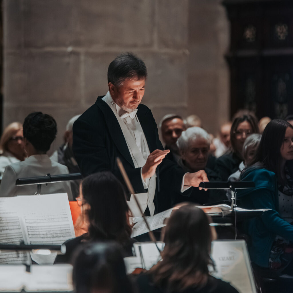 Následoval hudební program. K řízení orchestru byl přizván renomovaný český dirigent, působící v opeře Národního divadla a Divadle J. K. Tyla v Plzni, kde je nyní šéfdirigentem. Úvodní předehra k opeře Cosi fan tutte, K. 588 tedy byla svěřena do rukou toho nejpovolanějšího. Orchestr hrál od začátku soustředěně, ve vynikající souhře. Optimistická hudba v „neproblematické“ tónině C dur, jejímž úkolem je vnést posluchače do děje komické opery, zaujala. Mozartovské obsazení s redukovanými počty smyčců i na obrovský prostor Katedrály svatého Bartoloměje byla dostačující. Škoda byla pouze lehce nezřetelného vyznění partů obou fagotů, nikoli z důvodu jakékoli indispozice jejich vynikajících hráčů, ale z důvodu, že seděli příliš vzdáleni dirigentovi, zasazeni až do oltářního prostoru chrámu. Nicméně prostor klade na hráče orchestru akusticky zcela jiné nároky, než jeho „domovský“ v Měšťanské besedě, který ovšem také není akusticky zdaleka ideální. V této souvislosti nezbývá nic jiného, než vyslovit přání brzké realizace obnovy koncertního sálu „Peklo“ jako akusticky vhodného sídla a potřebného zázemí orchestru…