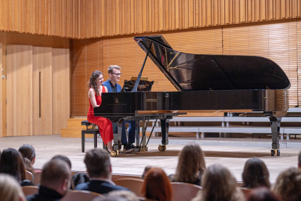 „Klavíristka jako přídavek oznámila Dvořákův Slovanský tanec č. 2 na čtyři ruce.“