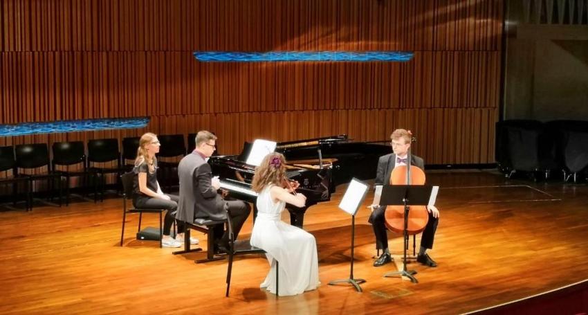 V druhé části se Matouš Zukal představil jako komorní hráč. Se svými spolužáky Klárou Leškovou (housle) a Filipem Halečkou (violoncello) zvolili Klavírní trio H dur op. 8 Johannesa Brahmse. A při jeho interpretaci si počínali jako zkušení hráči! Bylo možno postřehnout suverénnost, jistotu a kompaktnost, pozornost vůči sobě navzájem, přesnost při přebírání témat jednotlivými nástroji i v nasazování frází a jejich ukončování. Zatímco v první větě Allegro con brio na sebe strhávaly pozornost překrásný zvuk Halečkova violoncella i naléhavý tón Klářiných houslí, ve druhé větě (Scherzo. Allegro molto) dostal velký prostor klavír. Toho Matouš Zukal náležitě, i když ne okázale využil a dal posluchači okusit, v jaké různé dynamice a tempu ztvárňuje rozvíjené téma. Třetí věta (Adagio) je vážná: klavír vnáší svými akordy naléhavost, kterou rozvíjejí smyčce, jež odpovídají v témže duchu. Všichni tři interpreti jako by si byli vědomi významu každého tónu, každé noty. Na posluchače se v té chvíli valily hudební plochy, před kterými v dobrém slova smyslu nebylo úniku. Ve čtvrté větě pak Matouš Zukal rozehrál svůj klavír energicky až rezolutně, skladbu zakončili všichni tři hráči s vášnivostí a plným nasazením. Taková interpretace ne právě snadné skladby je velkým příslibem do budoucna. A je třeba zmínit i profesora komorní hry těchto nadaných mladých hudebníků – je jím Milan Langer.