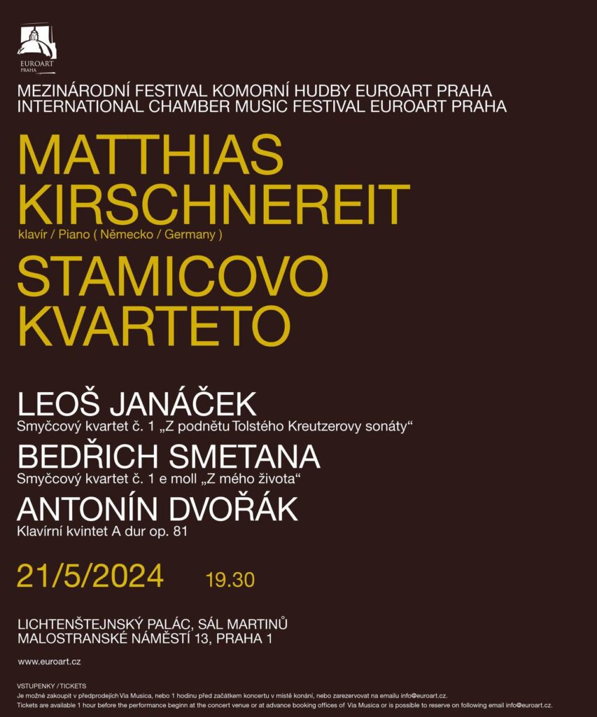 Pražské kulturní dění v oblasti komorní hudby obohacuje již řadu sezón Mezinárodní festival komorní hudby EuroArt Praha, za nímž umělecky stojí Josef Kekula, houslista Stamicova kvarteta. V Sále Martinů pražské HAMU, který je festivalovou domovskou scénou, se 21. května představí klavírista Matthias Kirschnereit právě v doprovodu zmíněného kvarteta.