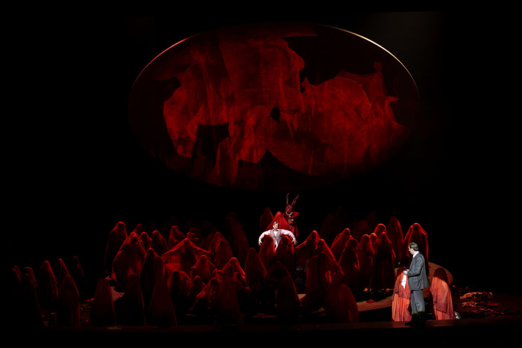 V Semperově opeře v Drážďanech se toto historické nedopatření pokusila napravit nová intendantka Nora Schmid, a tak se 28. září 2024 stalo památným okamžikem divadla hned z několika důvodů. Jako inaugurační představení nové „domácí paní“ a jako datum premiéry Boitova Mefistofela v režii Evy-Marii Höckmayr a hudebním nastudování Andrey Battistoniho. Osobně jsem zhlédl až reprízu dne 13. října, takže čistě premiérové pocity z nové produkce zprostředkovat nemohu. Z vyprávění účastníků i mediálních ohlasů lze však úvodní inscenační počin nové sezóny označit za nesporně úspěšný. Spontánních závěrečných standing ovations, určených protagonistům večera, jsem byl konec konců svědkem i já. Dovolte mi tedy uvést jen několik postřehů, z mého subjektivního pohledu snad o něco zdrženlivějších.