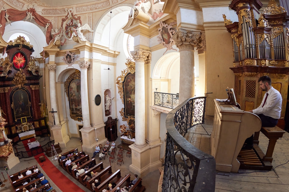 Tomasz Soczek, cenami ověnčený polský varhaník a pedagog, rozezněl před nedávnem opravený nástroj na kůru. V úvodu se představil sólově. Kostelní loď naplnil Preludiem a fugou G dur BWV 541 Johanna Sebastiana Bacha. Stejným autorem poté pokračoval violoncellista Tomáš Jamník – také sólově, avšak přímo před zraky diváků. Violoncellovou suitu č. 1 G dur BWV 1007 provedl na zapůjčený nástroj Lorenzo Storioni z roku 1784. Nespočet odstínů medové barvy, které v nástroji hudebník dokázal najít, se nesl prostorem a navozoval chvílemi až meditativní atmosféru. Rychlejším částem, ačkoliv technicky skvěle zvládnutým, by však možná prospělo více klidu, neboť se stávalo, že bloudily snad všemi zákoutími a k posluchači dorazily bohužel trochu nesrozumitelné.