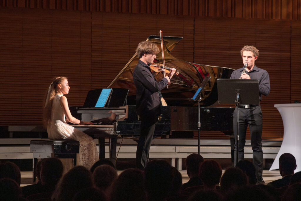 Udílení cen pokračovalo hudebním vystoupením tří vynikajících mladých hudebníků. Nejprve vystoupil sólově houslista Matteo Hager, student třetího ročníku na Královské hudební akademii v Londýně, se Sonátou pro housle, která snad byla jeho vlastní. Poté zahrála sólově klavíristka Nora Lubbadová, ze Základní umělecké školy Olešská v Praze, kde hraje od svých čtyř let, Etudu č. 10 Fryderyka Chopina a poté skladbu Clauda Debussyho L´Isle Joyneuse (Ostrov radosti). Následovalo vystoupení klarinetisty Matthewa Hockadaye, který za spolupráce klavíristky Nory Lubbadové přednesl dvě věty ze Sonáty pro klarinet a klavír: 2. Romance a 3. Allegro con fuoco od Francise Poulenca. Na závěr se představili všichni tři, aby se podělili o přednes Slovanského tance č. 2 Antonína Dvořáka. Všichni tři mladí lidé, ještě snad ani ne plnoletí, prokázali, že jsou již plnokrevnými a hotovými hudebníky, kteří jsou připraveni předávat své umění publiku v jakémkoli koncertním sále. Škoda jen, že neexistoval program večera, kde by se posluchači o mladých umělcích i o skladbách, které hráli, dozvěděli něco bližšího.