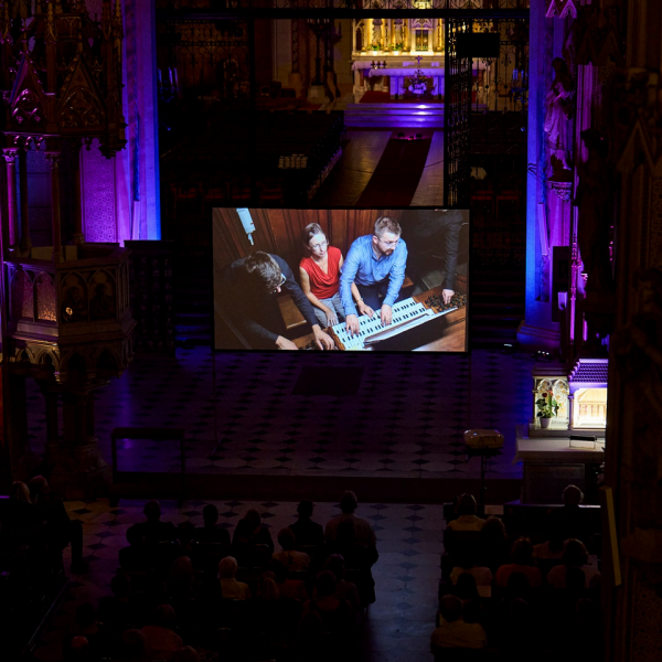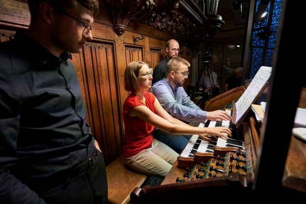 První věta Čtvrté symfonie A dur, op. 90 Allegro vivace Felixe Mendelssohna-Bartholdyho otevřela koncertní část večera dvojice varhaníků společnou hrou. Velice příjemným překvapením byl skvělý dramaturgický tah pořadatelů, a to velké plátno před oltářem katedrály, na němž byla pomocí kamer ze tří různých úhlů promítána po celý večer naprosto strhující hra obou varhaníků, a tak si mohli návštěvníci vychutnat nejen skvělý hudební, ale i vizuální zážitek a trochu více odhalit složitost a náročnost varhanické hry, která vyžadovala navíc další dva pomocníky – taktéž varhaníky – kteří měli na starost otáčení stran not a přepínání rejstříků varhan.