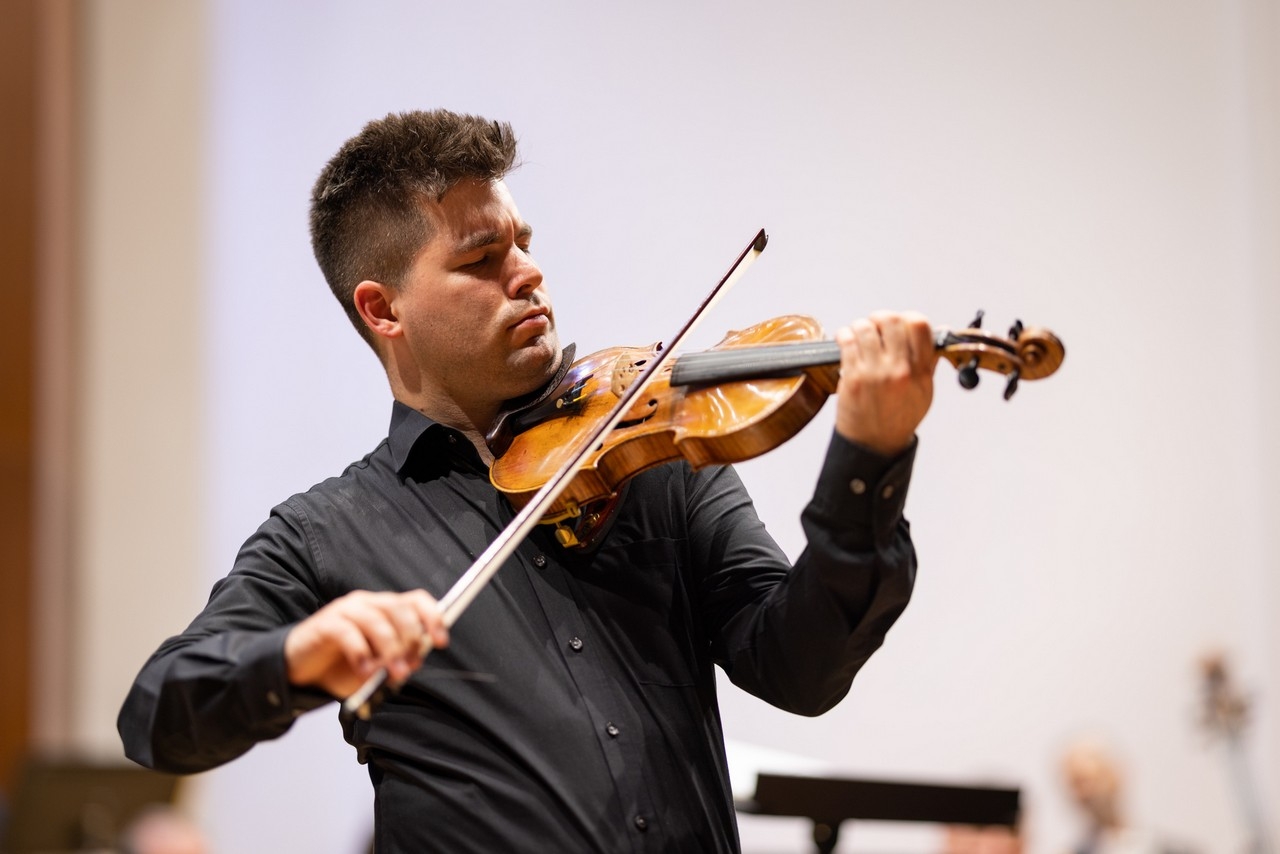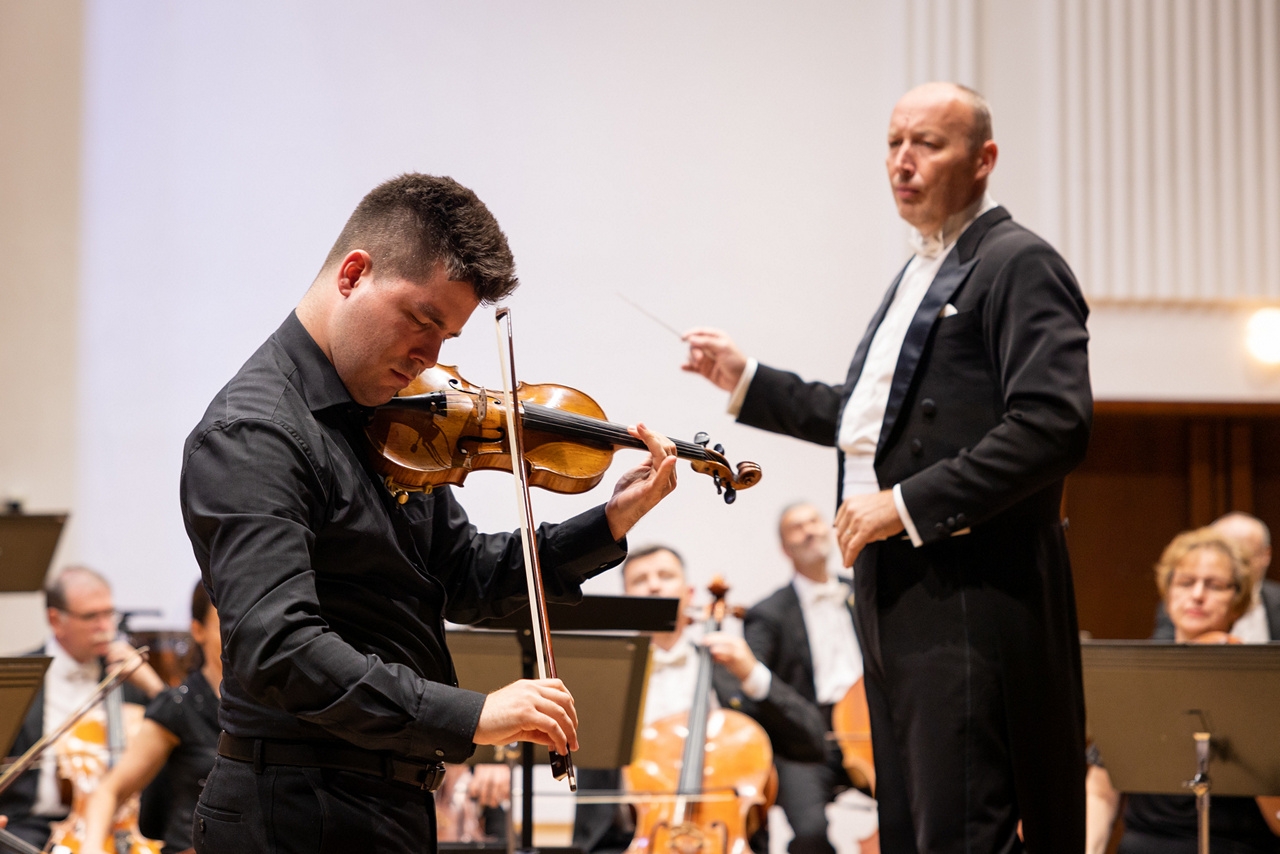 Koncert pro housle a orchestr D dur, op. 35 Petra Iljiče Čajkovského zná snad každý, kdo má pozitivní vztah ke klasické hudbě. Z hlediska houslového repertoáru patří k těm nejznámějším, společně ještě s podobnými díly Johanessa Brahmse, Jeana Sibelia, Felixe Mendelssohna-Bartholdyho či předchůdce všech zmíněných, Ludwiga van Beethovena. Jedná se o rozsáhlé, třívěté dílo mající až symfonický rozměr. Právě tato skladba zaplnila celou první půlku večera s podtitulem Symfonické finále, což bylo zcela výstižné. Občas zazní i ve zdejší Sukově síni – například roku 2009 ho přednesl houslista Pavel Šporcl za doprovodu Janáčkovy filharmonie Ostrava na dnes už zaniklém festivalu Le Quattro Stagioni. Hrají ho i absolventi zdejší konzervatoře. Sólista večera, Milan Al-Ashhab, ho přednesl v takové kvalitě, na kterou se bude ještě dlouho vzpomínat – krásný tón nesoucí se nad orchestrem, bravurní technika, krystalicky čisté flažolety, jadrné nižší polohy nástroje, nadhled nad hraným dílem, nápaditá i rafinovaná agogika, virtuóznost i zřetelnost těch nejbrilantnějších pasáží – ve výčtu superlativ by se dalo ještě pokračovat. Dobře připravený orchestr spolu s dirigentem sólistu skvěle doprovázeli, jejich dynamická škála začínala na jemném pianissimu a v nejsilnějších místech zasahovala až do takřka symfonického fortissima. Pěkná byla i plynule vystavěná agogika v krajních větách. Po zasloužených ovacích přednesl Al-Ashhab ještě jeden barokní přídavek, který bohužel blíže slovně nespecifikoval. Zdánlivě připomínal slavnou Ciacconu d moll Johanna Sebastiana Bacha, jednalo se ale o jiné dílo.