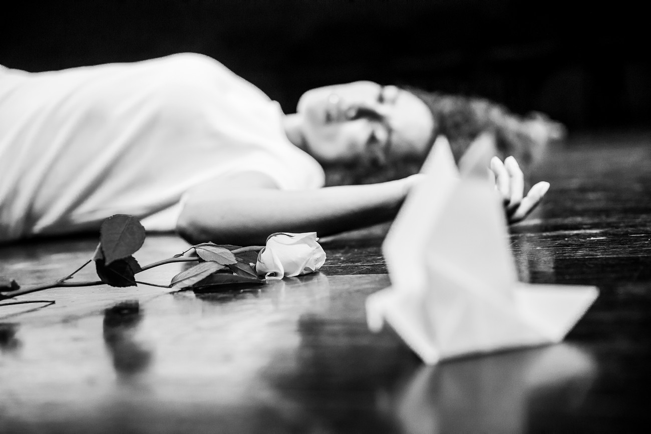 Irena na začátku přišla a dílo – česky – uvedla, pozvala Lovra na scénu, a zatímco saxofonista hrál, zula si tenisky, neboť celé představení absolvovala bosa na kamenné podlaze sálu. S přítomnými diváky během produkce občas navazovala záměrný kontakt, roznášela jim papírové vlaštovky, procházela mezi řadami, v jedné chvíli ztišení (jichž je v opeře více, Ana Sokolović v partituře nabádá protagonistku, aby poskytla čas mentálnímu doznění vybraných sdělení) pohlédla postupně do očí všem v prvních řadách.