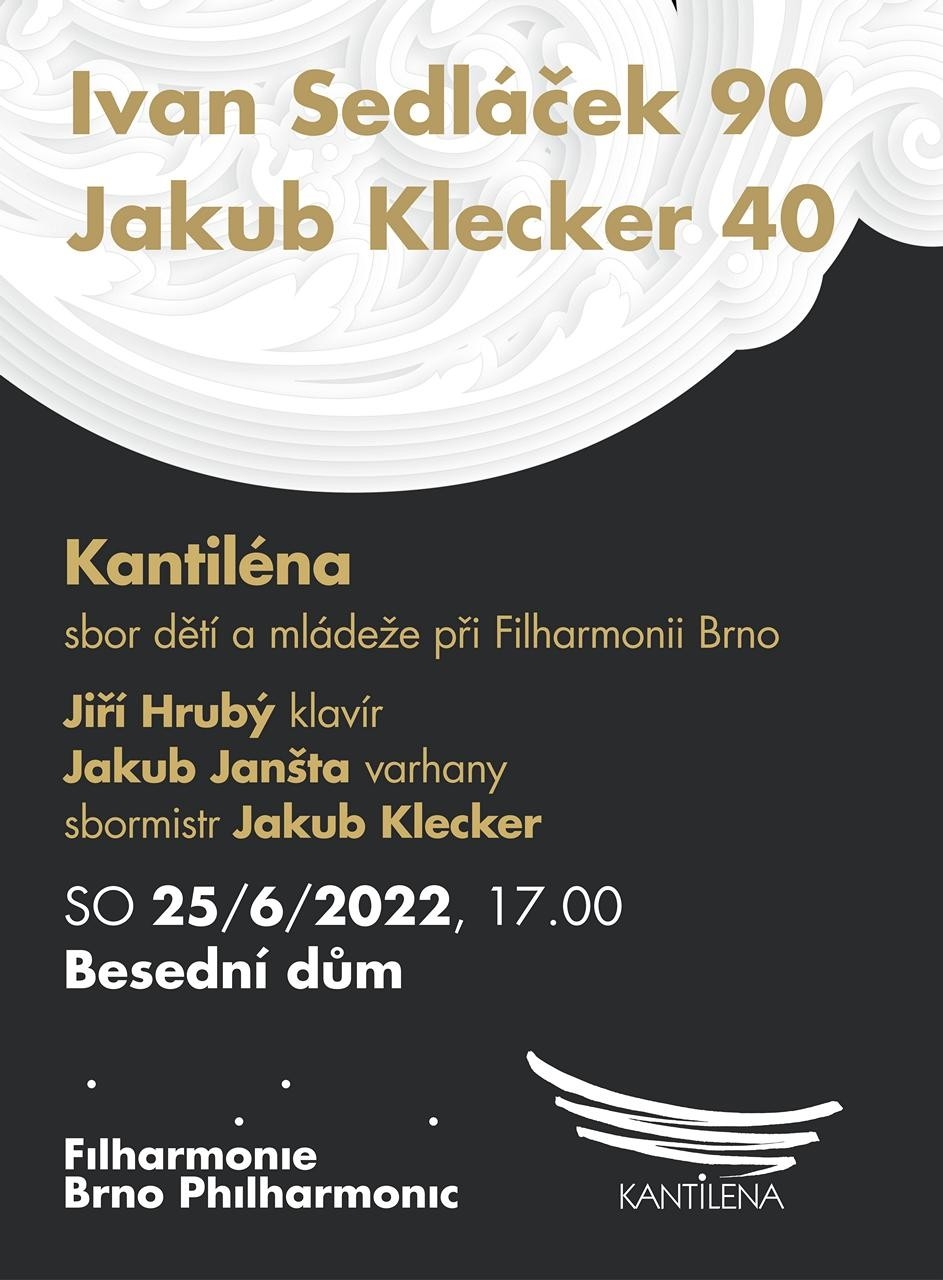 Kantiléna, sbor dětí a mládeže při Filharmonii Brno, pořádá v sobotu 25. června od 17 hodin v Besedním domě mimořádný koncert. Spoluúčinkovat na něm budou zpěváci Kantilény z let 2006 až 2022, klavírista Jiří Hrubý, varhaník Jakub Janšta a sbormistr a dirigent Jakub Klecker. Akce oslavuje jubilea zakladatele a dlouholetého sbormistra Kantilény Ivana Sedláčka a jeho nástupce Jakuba Kleckera, které od sebe dělí celé půlstoletí. Večer je současně rozlučkovým koncertem Jakuba Kleckera s Kantilénou, který se kvůli koronavirovým opatřením nemohl uskutečnit před dvěma lety.