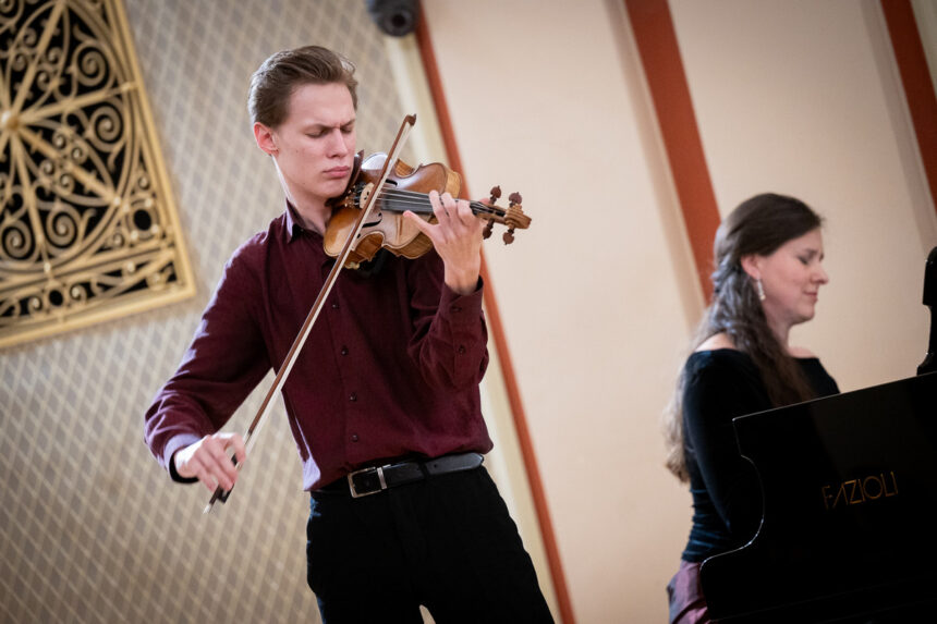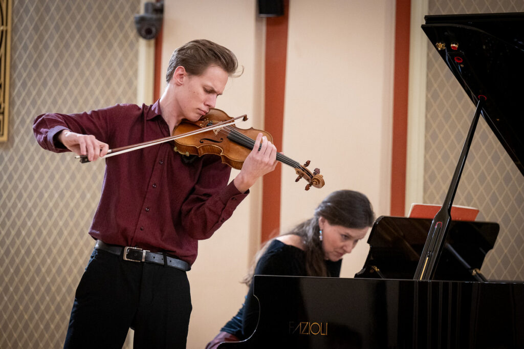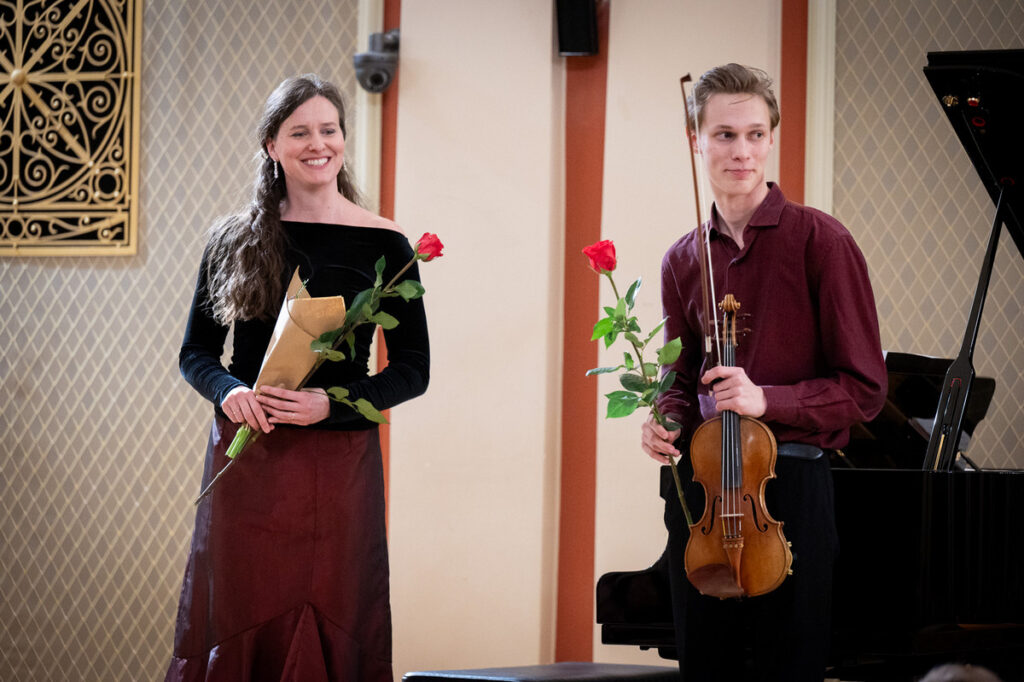 Druhou půlku koncertu opanovali houslista Jan Novák a klavíristka Silvie Ježková, jejichž kariéra je také olemována nejedním soutěžním úspěchem. Jan Novák se nedávno umístil na druhém místě Mezinárodní hudební soutěže Pražského jara, obdržel Cenu Českých center pro nejúspěšnějšího účastníka a zahrál si již na festivalu Dvořákova Praha. Silvie Ježková se účastnila Pražského jara a vystřídala už velké množství koncertních pódií v Rakousku, Německu či Japonsku. Duo se na úterním koncertě předvedlo ve velice dobré kondici, jejich dialogicky bezproblémová a celkově skvěle fungující souhra rozezněla Sukovu síň dobře secvičenými čísly z pera Leoše Janáčka a Johannesa Brahmse.