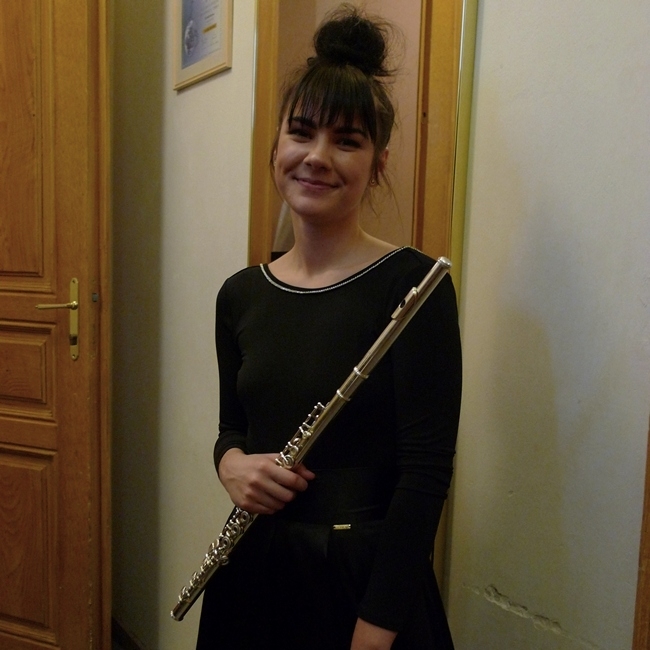 Svoji půli koncertu Katarína zakončila interpretací Grand Polonaise op. 26 Theobalda Boehma, která představovala spíše klasičtější repertoár. Zatímco v klavíru se odehrává v zásadě běžný akordický rozklad v 6/8 metru, nad ním se vine zdobný part flétny, o jehož virtuozitě nikdo nepochybuje. Stejně tak po koncertě nikdo nepochybuje o interpretačních dovednostech Kataríny Slavkovské. Vzhledem k tomu, že je ve třetím ročníku, můžeme s nadějí vyhlížet její absolventský koncert, o kterém už nyní víme, že bude mít grády.
